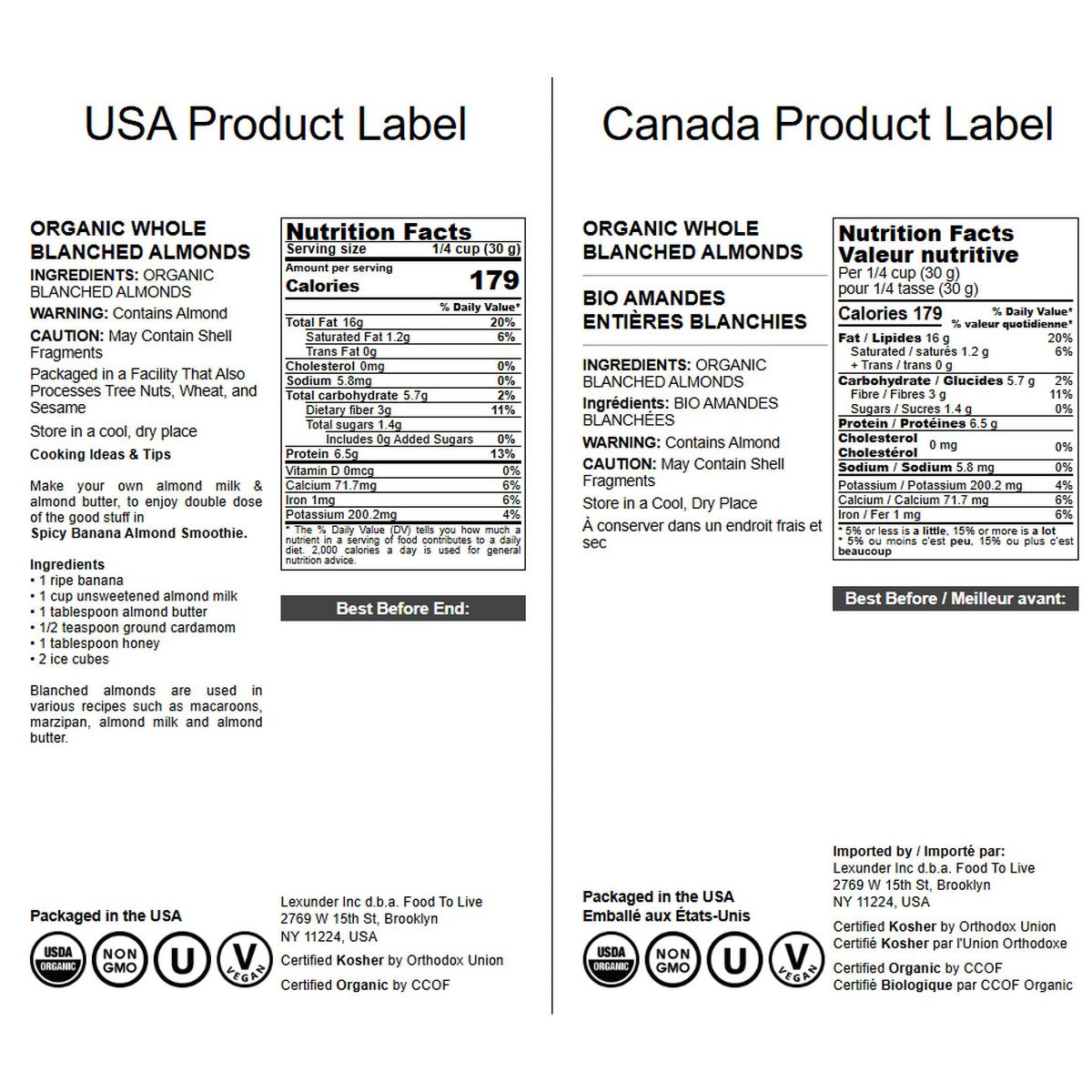 Almendras Enteras Blanqueadas Orgánicas – por Food To Live