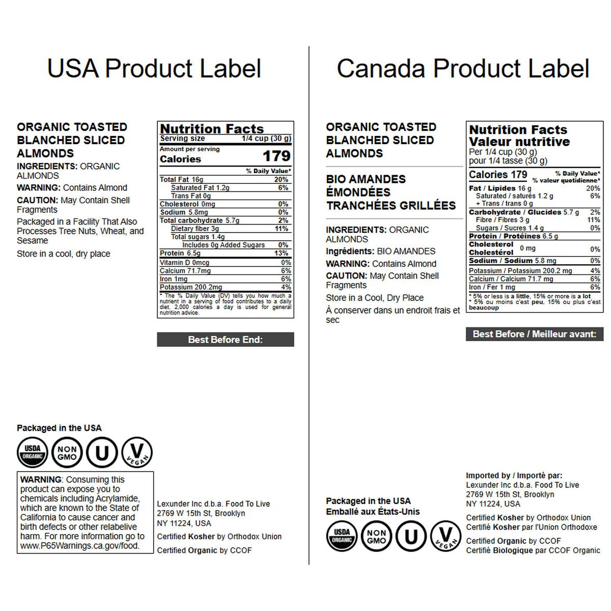 Almendras Fileteadas Tostadas y Blanqueadas Orgánicas – por Food To Live