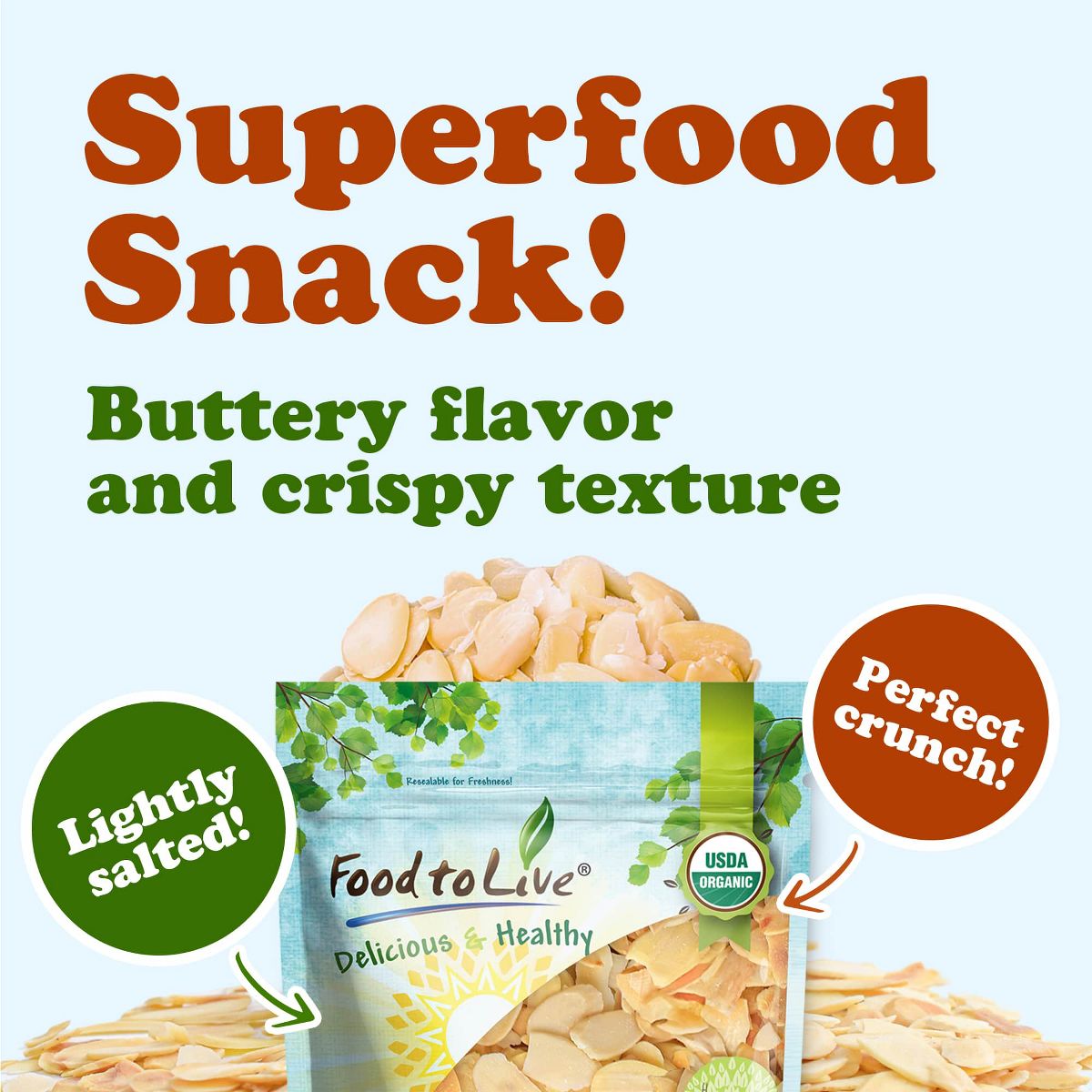 Almendras Fileteadas Tostadas y Saladas Orgánicas – por Food To Live