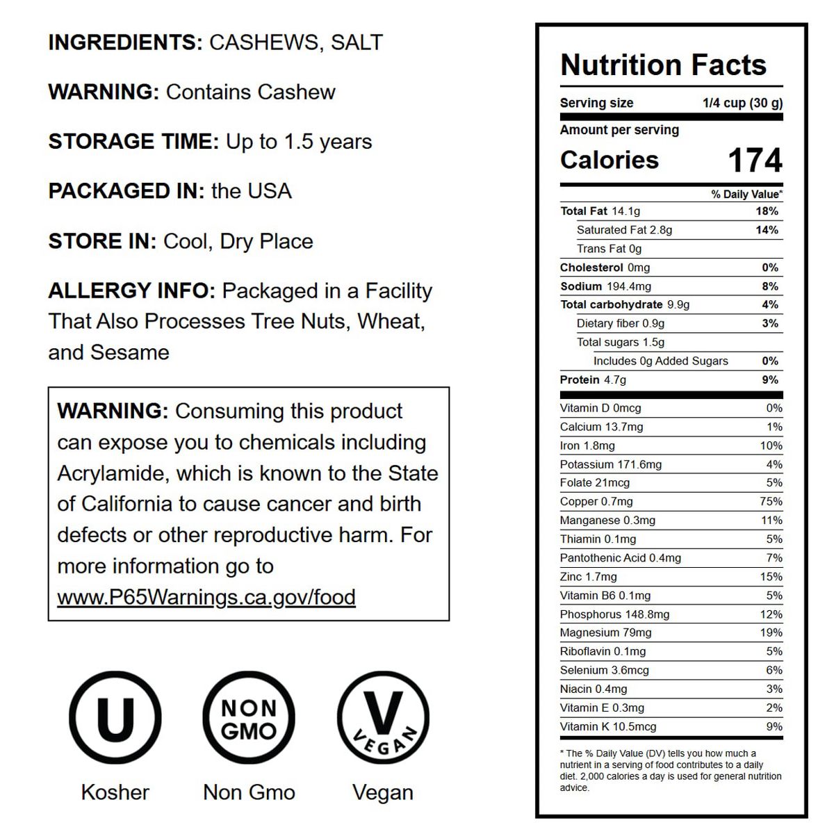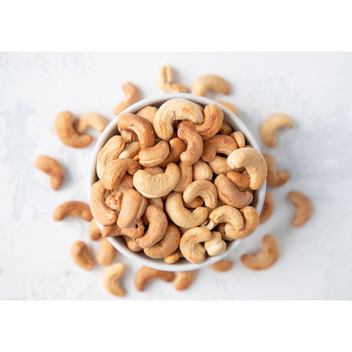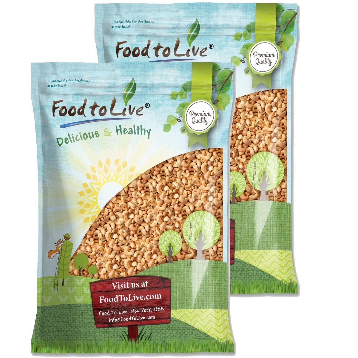 Anacardos enteros tostados en seco con sal del Himalaya de Food to Live. Snack natural, crujiente y delicioso. ¡Pruébalos hoy!