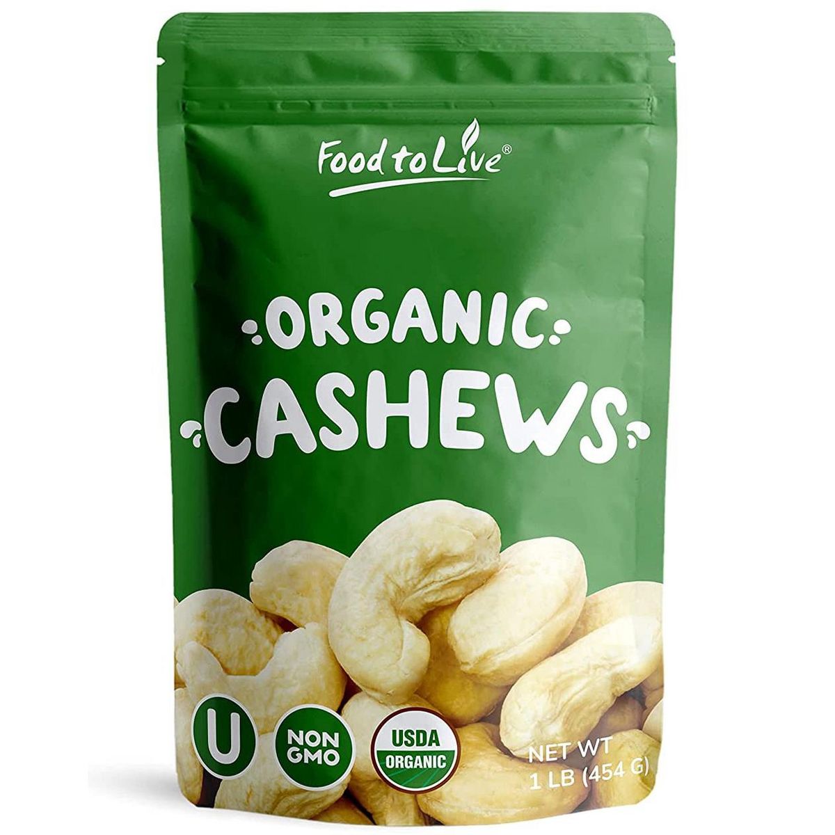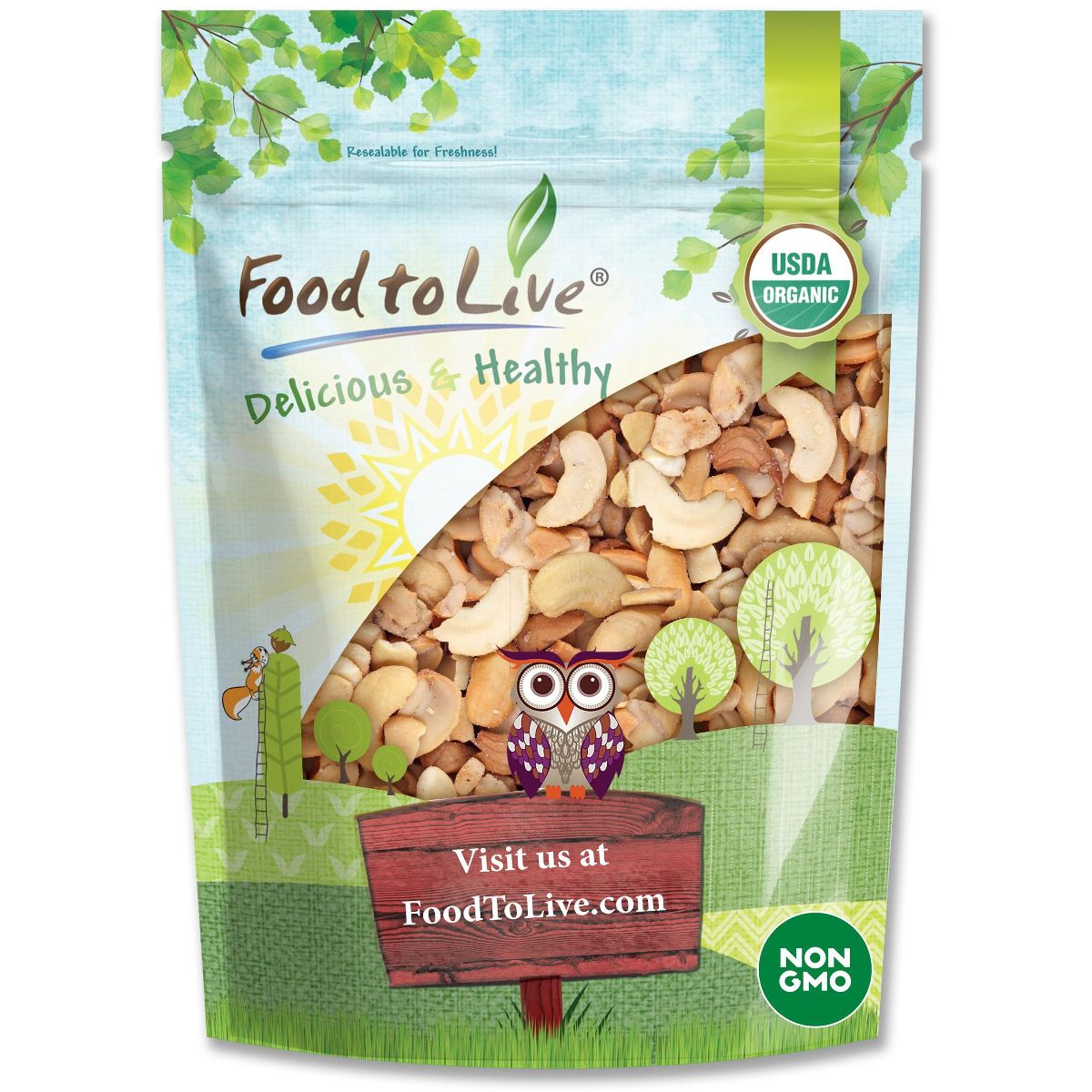 Anacardos orgánicos tostados en seco por Food to Live. Mitades y trozos con Sal del Himalaya. Sabor natural y nutritivo en un paquete de 2 LB.