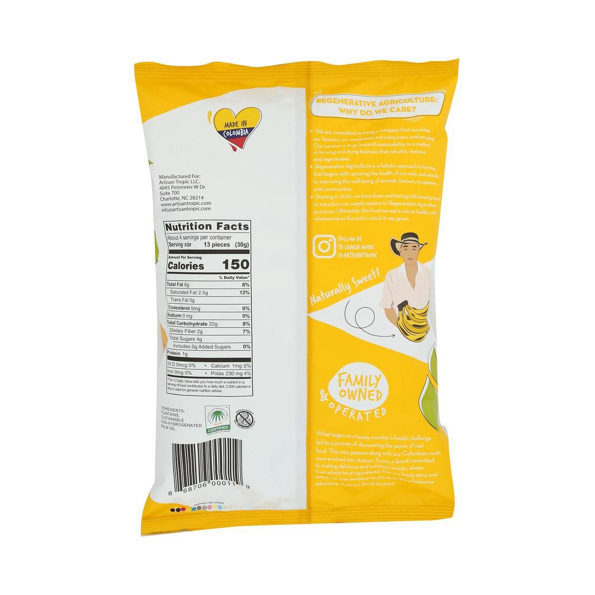 Artisan Tropic Tiras de Plátano Dulce Sin Granos – Caja con 12/4.5 oz