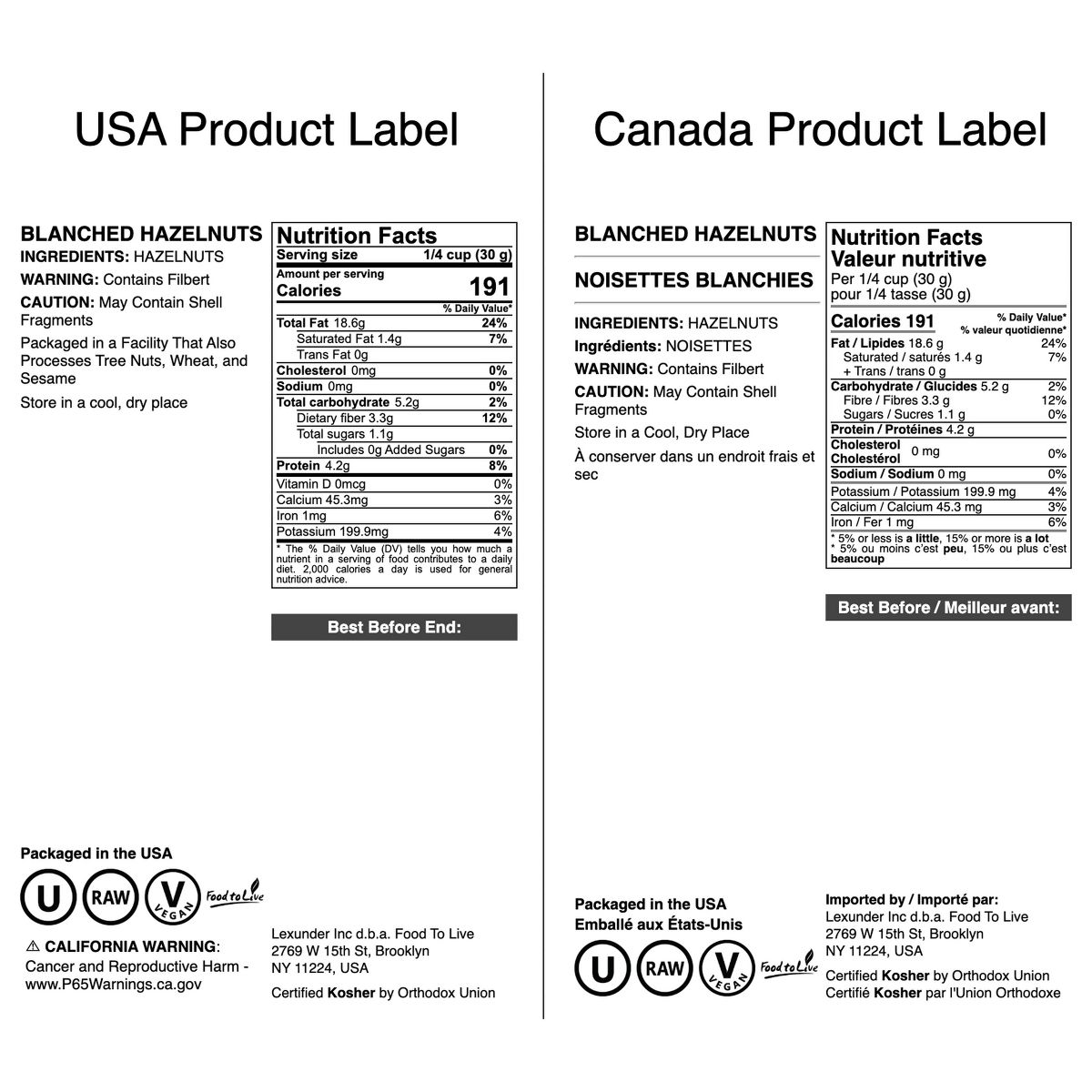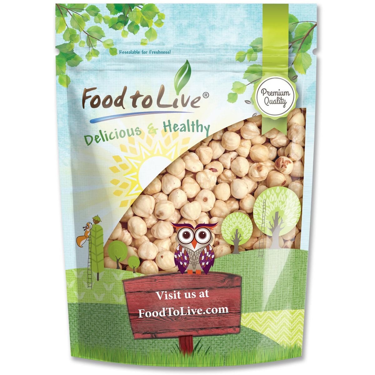 Avellanas blanqueadas crudas de Food to Live. Snack vegano y kosher sin piel ni sal. Disfruta su sabor natural en granel.