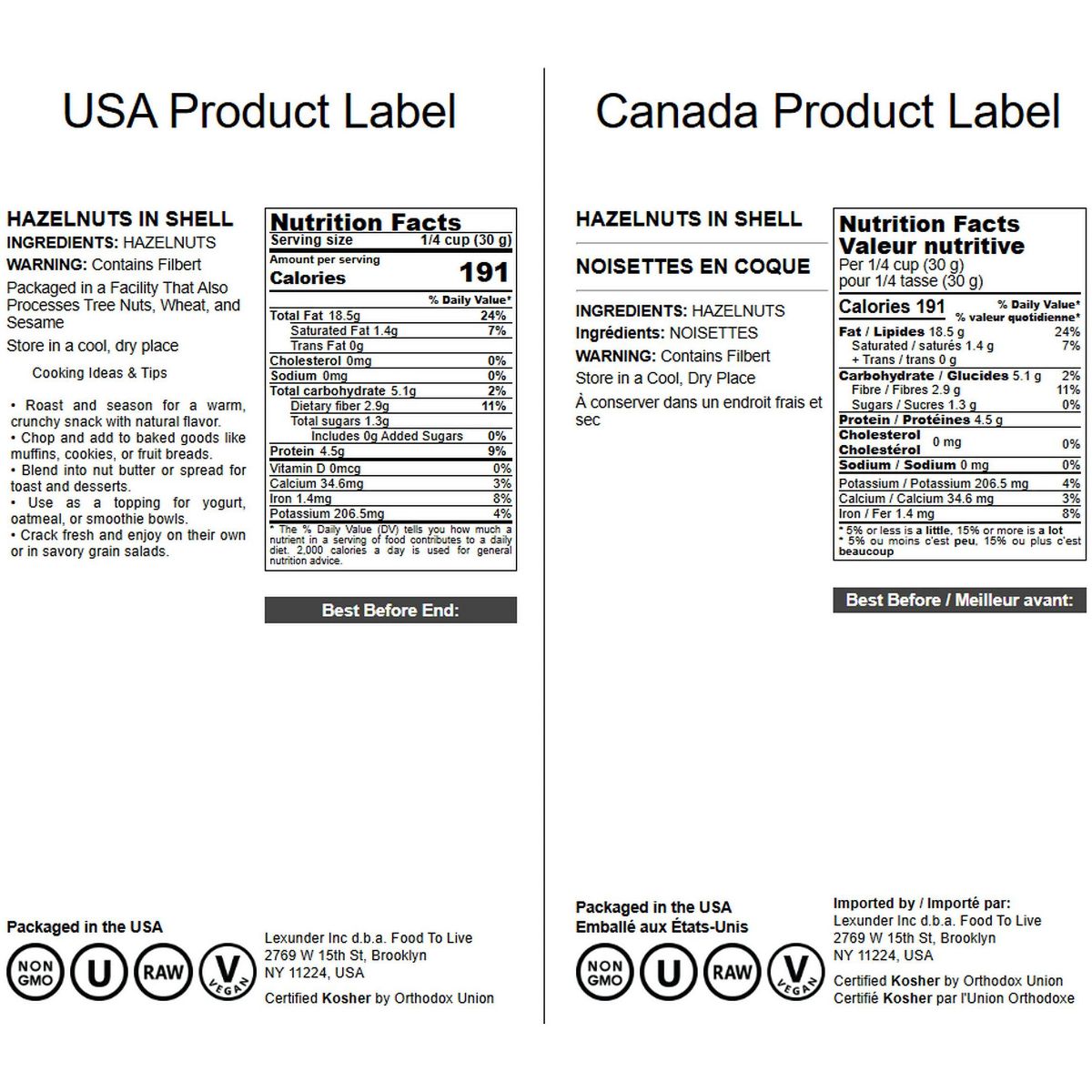 Avellanas con cáscara de Food to Live. Disfruta su sabor natural y frescura premium. Perfectas para snacks o recetas.
