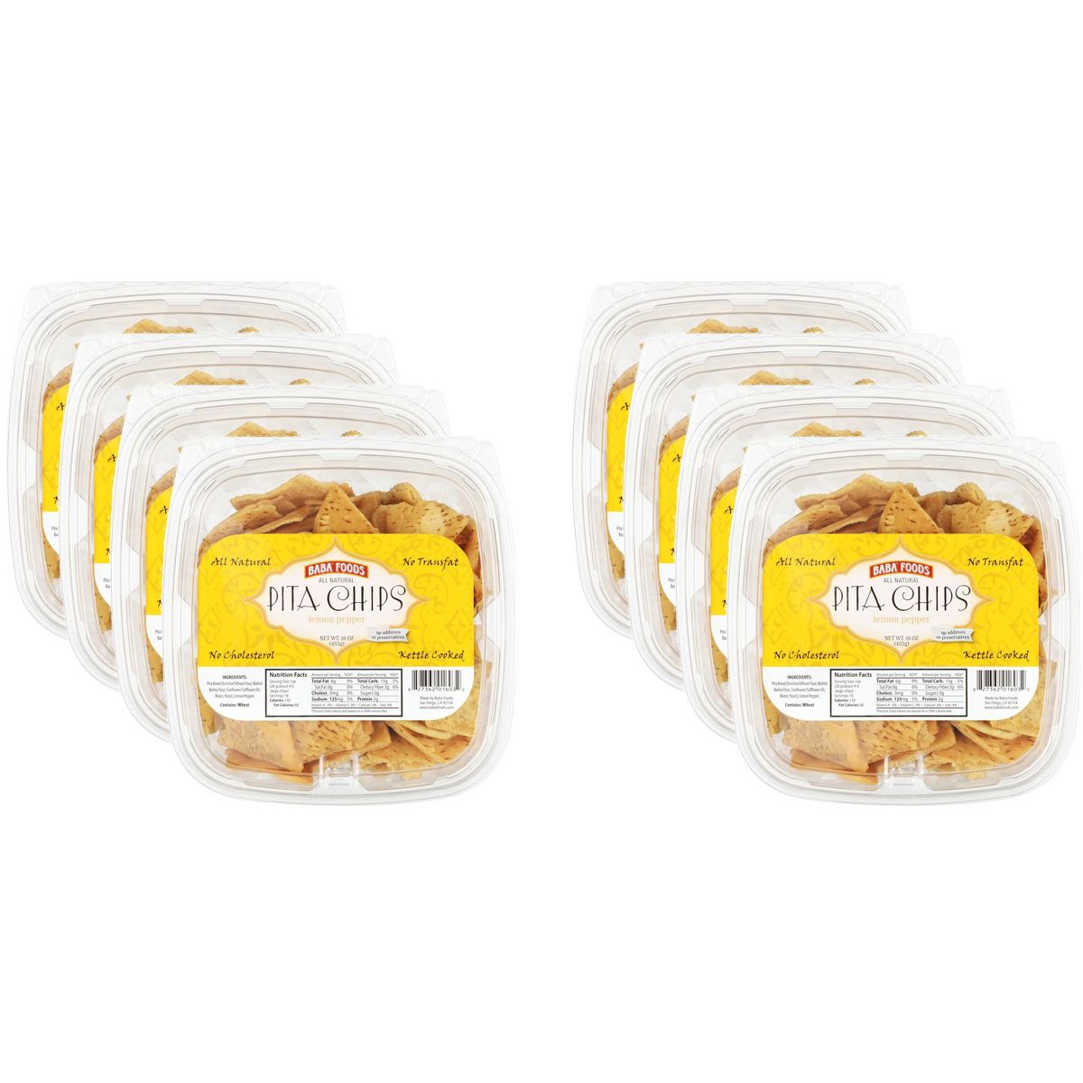Baba Foods Pita Chips Sabor Limón y Pimienta – Paquete de 8 – 16 oz