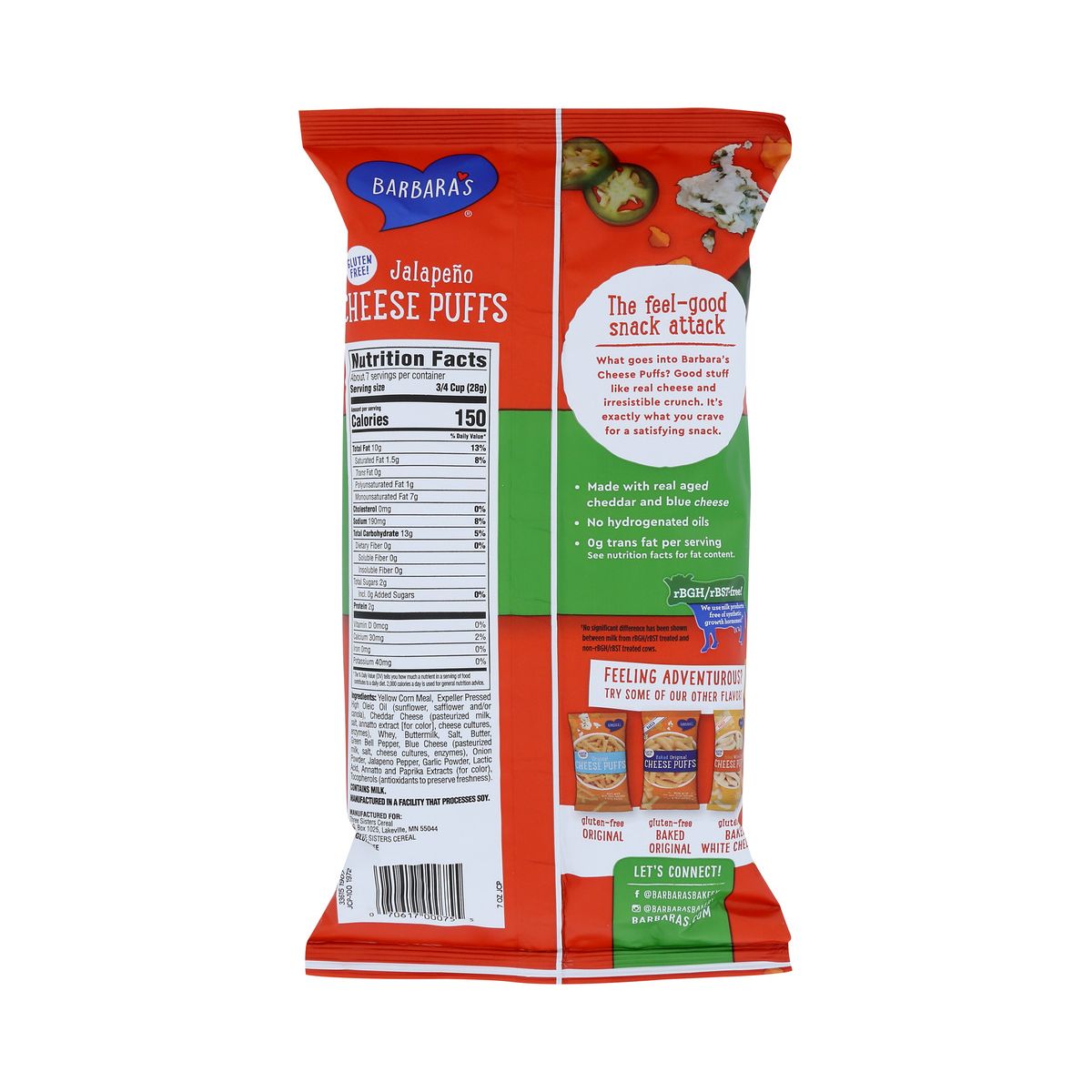 Barbara’s Baked Jalapeno Cheese Puffs Gluten Free – Caja con 12/7 oz