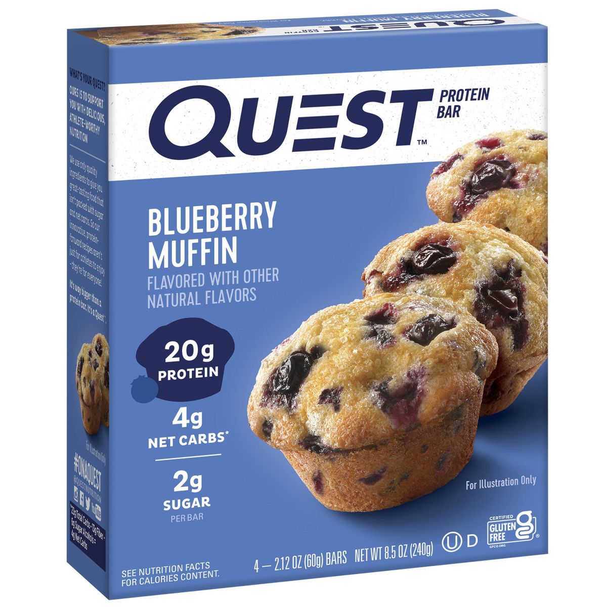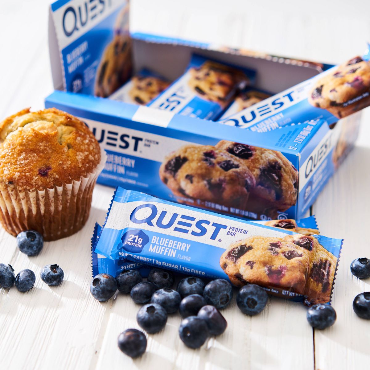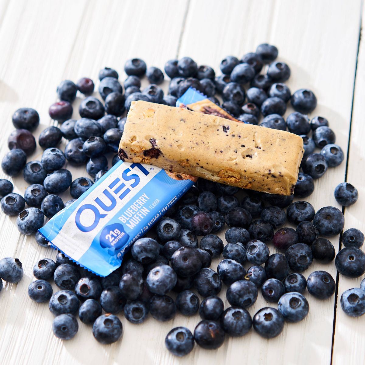 Disfruta el delicioso sabor a muffin de arándano de Quest Nutrition. Esta barra de proteína, con su textura masticable, es el snack perfecto y saludable.