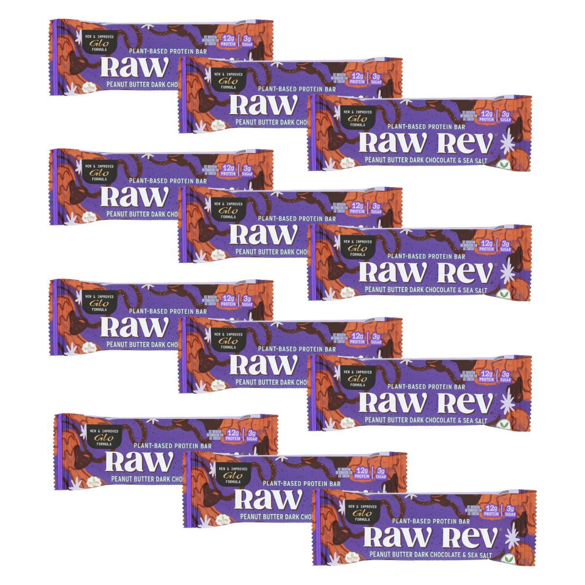 Barra de Proteína Raw Rev Mantequilla de Cacahuate Chocolate Oscuro y Sal Marina – 12 barras, 1.6 oz