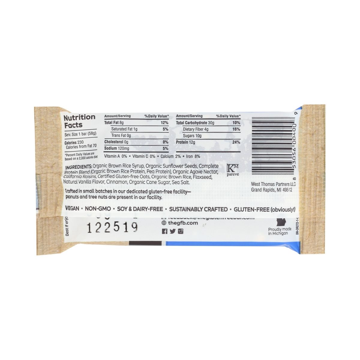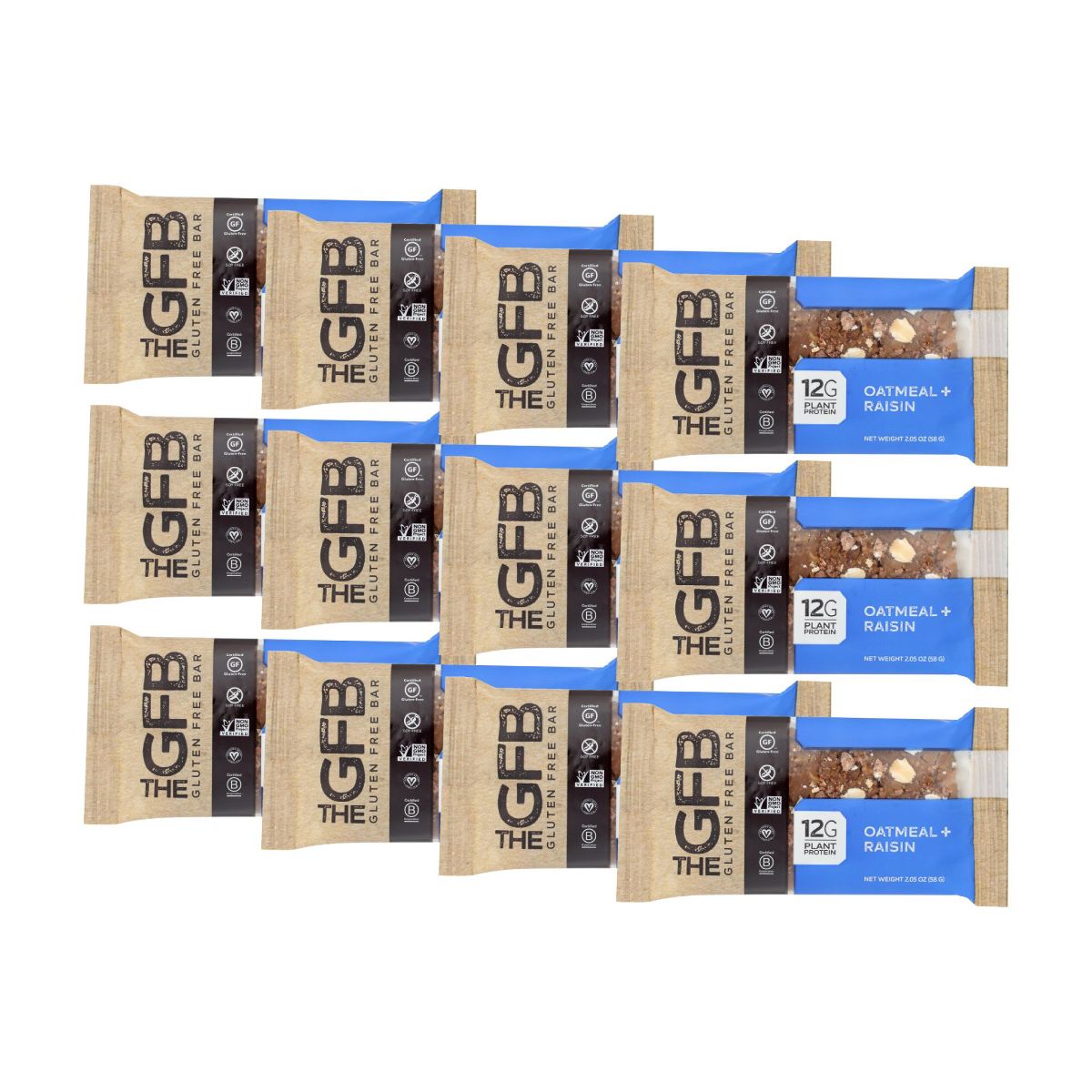 Barra de Proteína Vegetal The GFB sin Gluten con Avena y Pasas – 12 barras, 2.05 oz