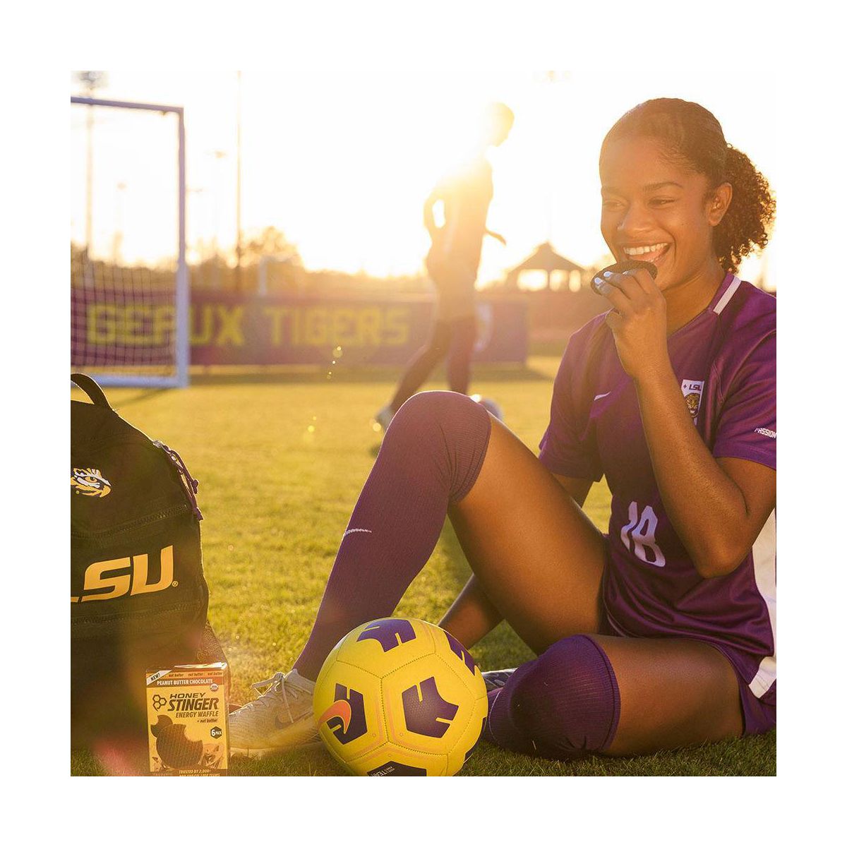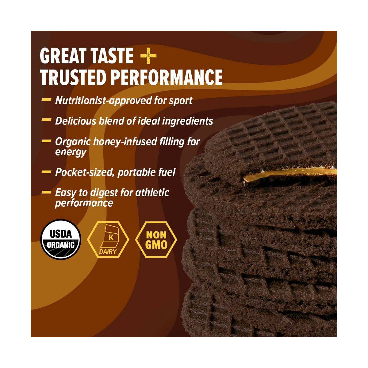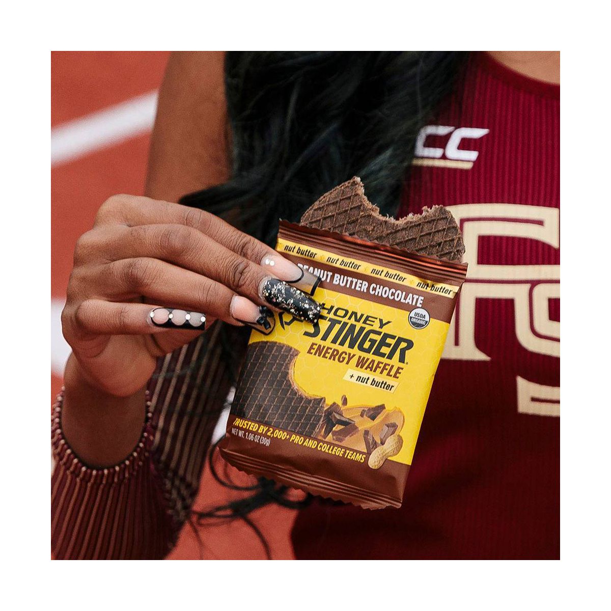 Barra energética Honey Stinger con sabor a mantequilla de cacahuate y chocolate. Textura masticable ideal para deportistas. ¡Recarga tu energía!