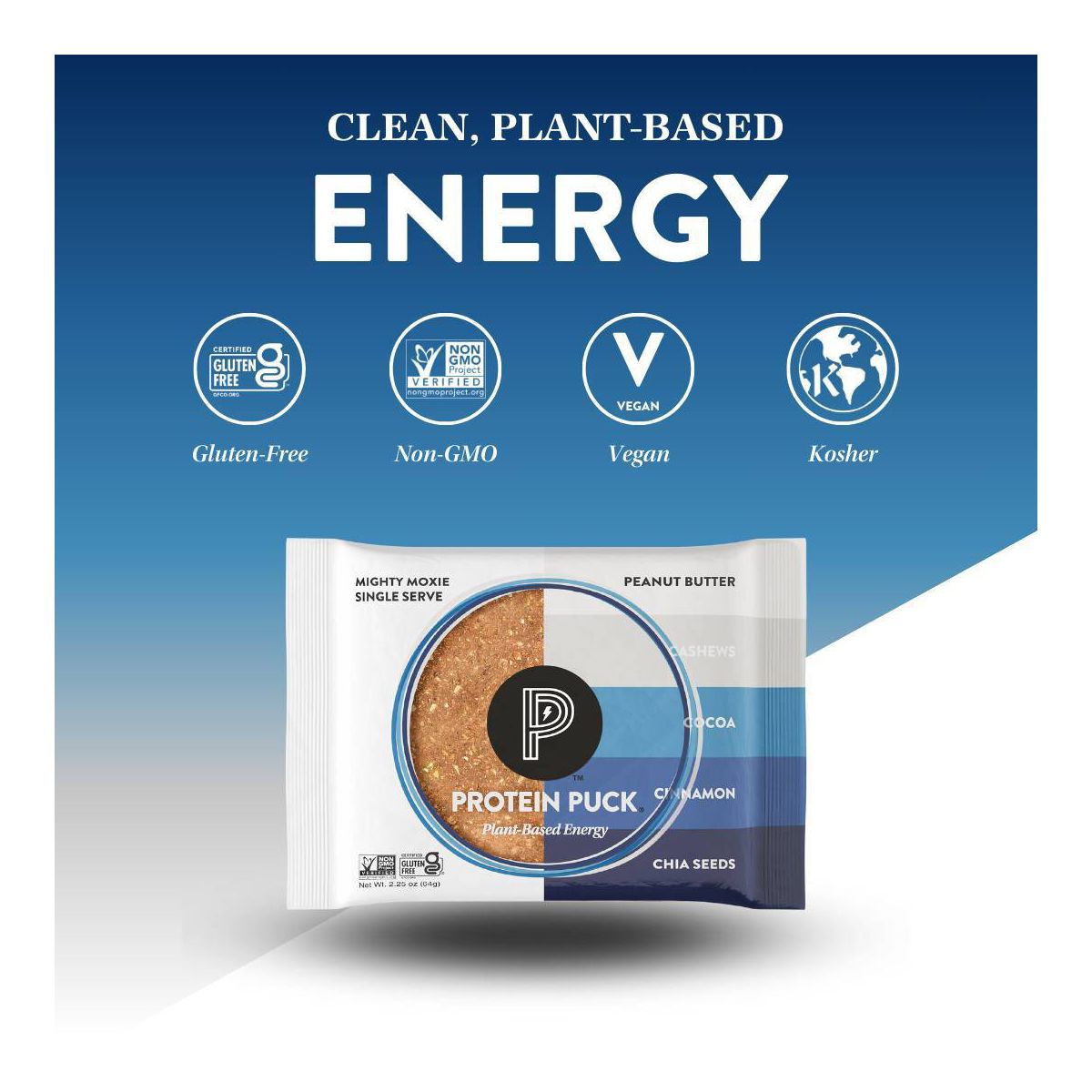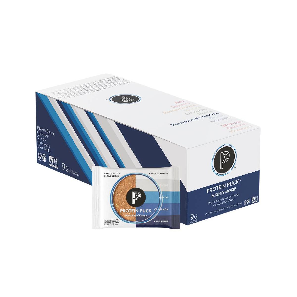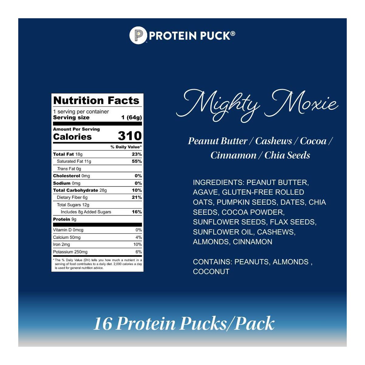 Barra Nutricional Protein Puck Mighty Moxie – Sabor Cacao Canela – 2.25 oz / Paquete con 16 piezas