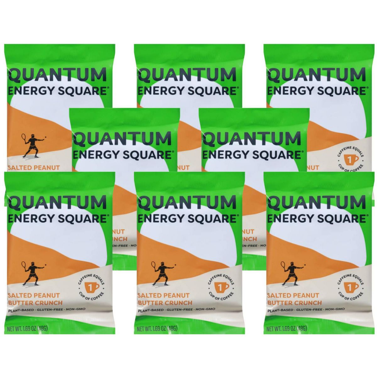 Barra energética Quantum Energy Squares con sabor a mantequilla de cacahuate salada y crujiente. Textura masticable ideal para un snack nutritivo. Caja con 8…