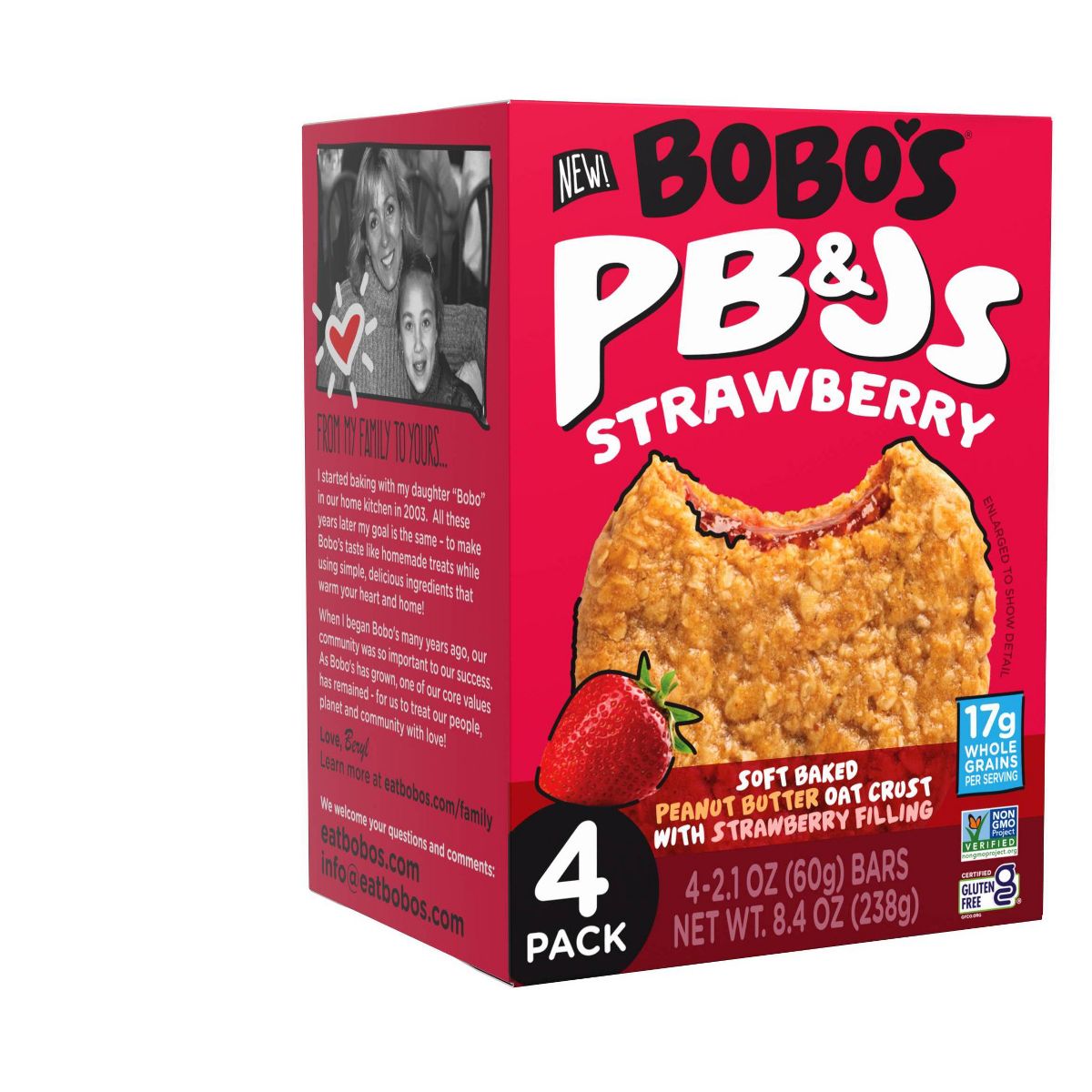 Barras de Avena Bobo’s PB&Js de Fresa – 8.4 oz / 4 unidades