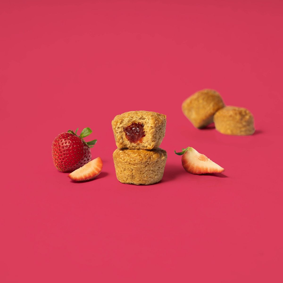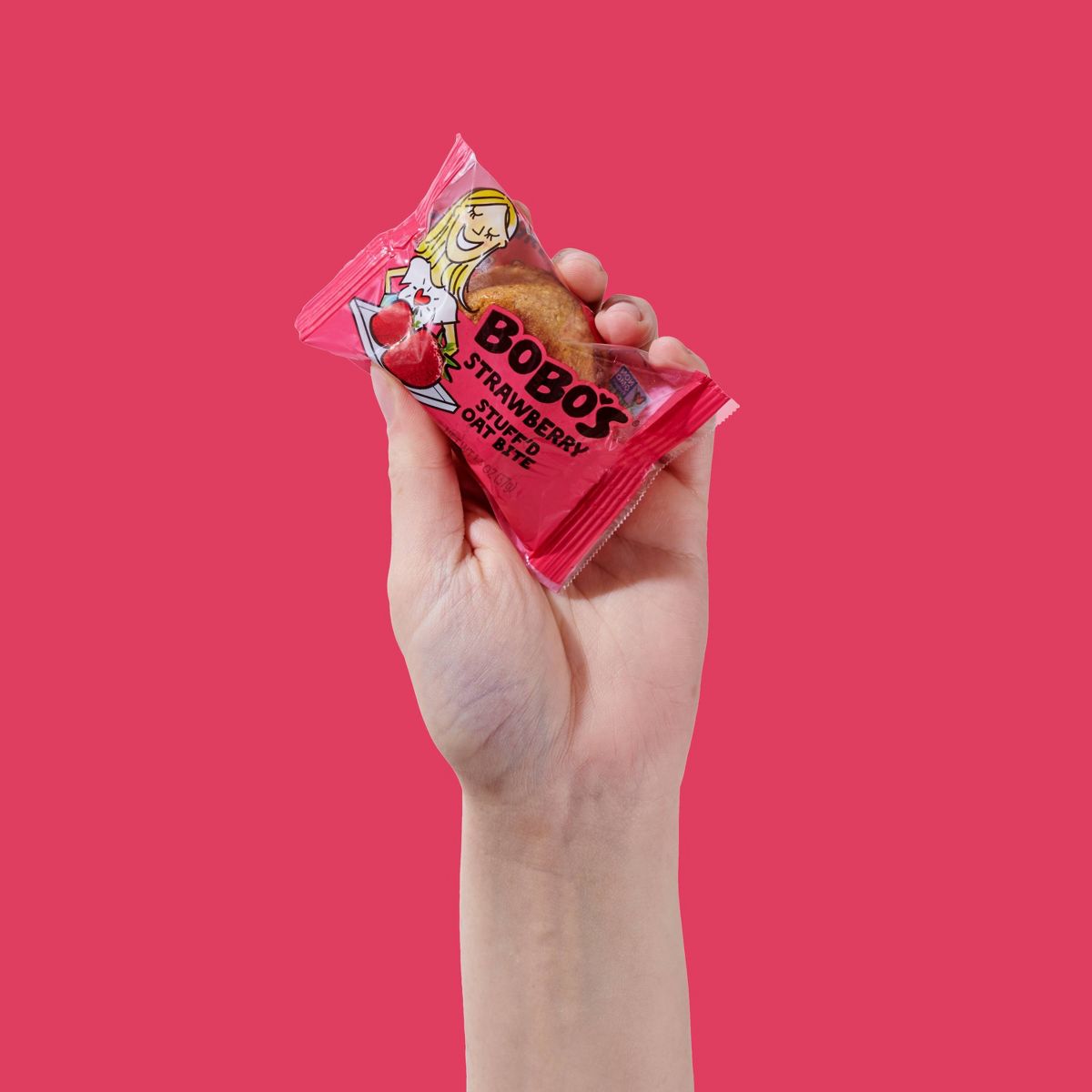 Barras de avena Bobo’s con relleno de fresa. Delicioso bocado masticable, perfecto para un snack nutritivo y energético. ¡Pruébalas!