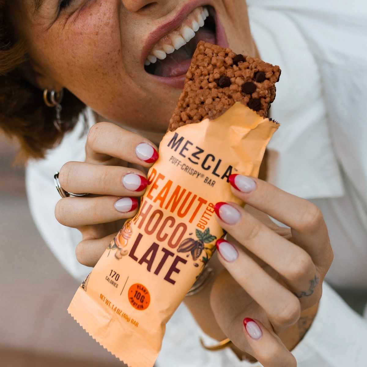 Barras de proteína Mezcla con mantequilla de cacahuate y chocolate. 10g de proteína, textura crujiente y deliciosa. ¡Pruébalas!