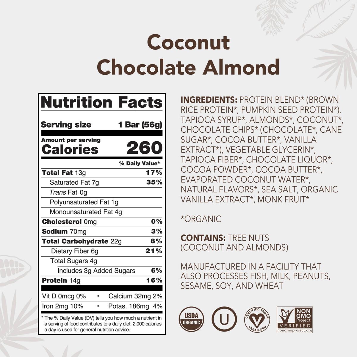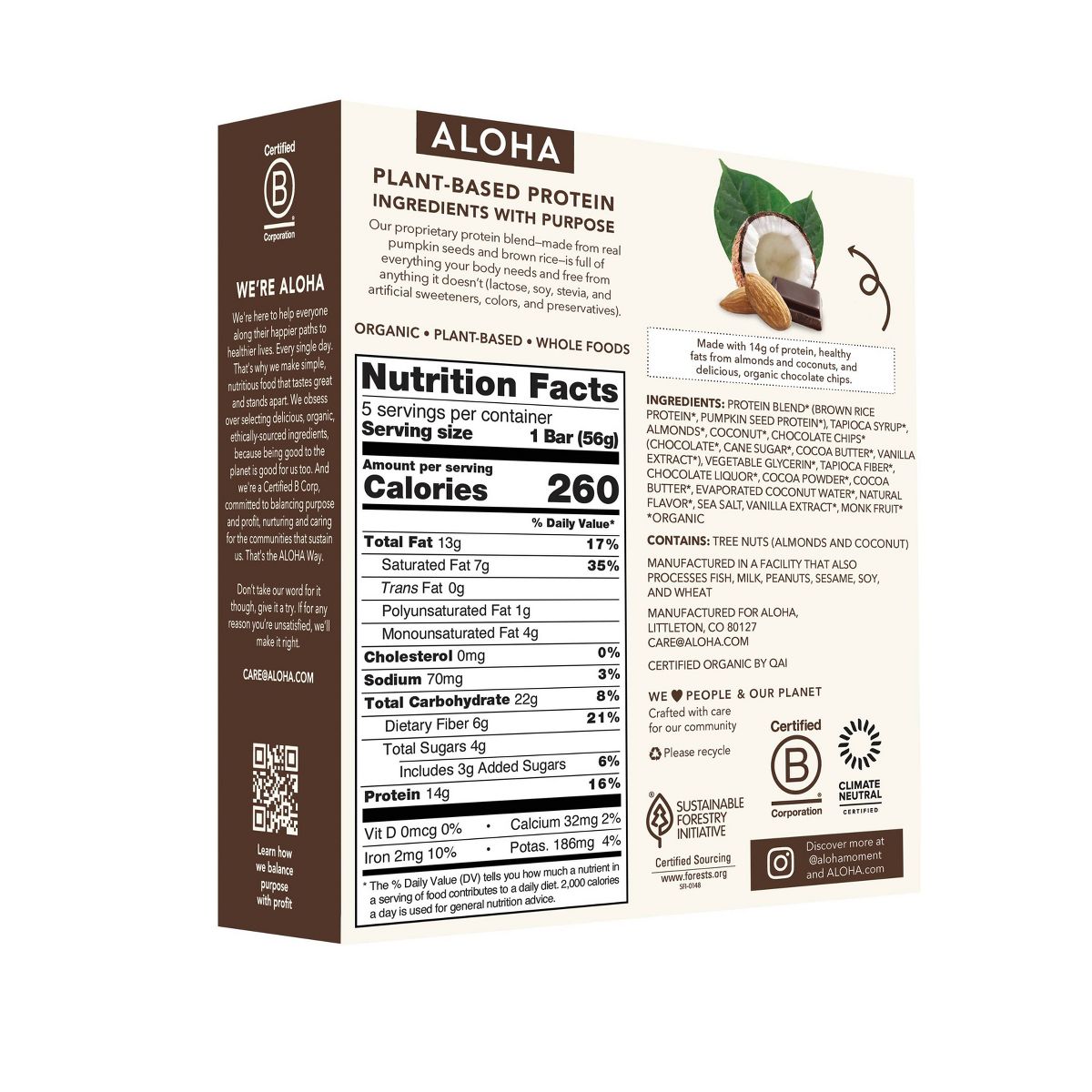 Barritas de Proteína Vegetal ALOHA Chocolate Coco y Almendra – 14g de Proteína – 9.88 oz/5 ct