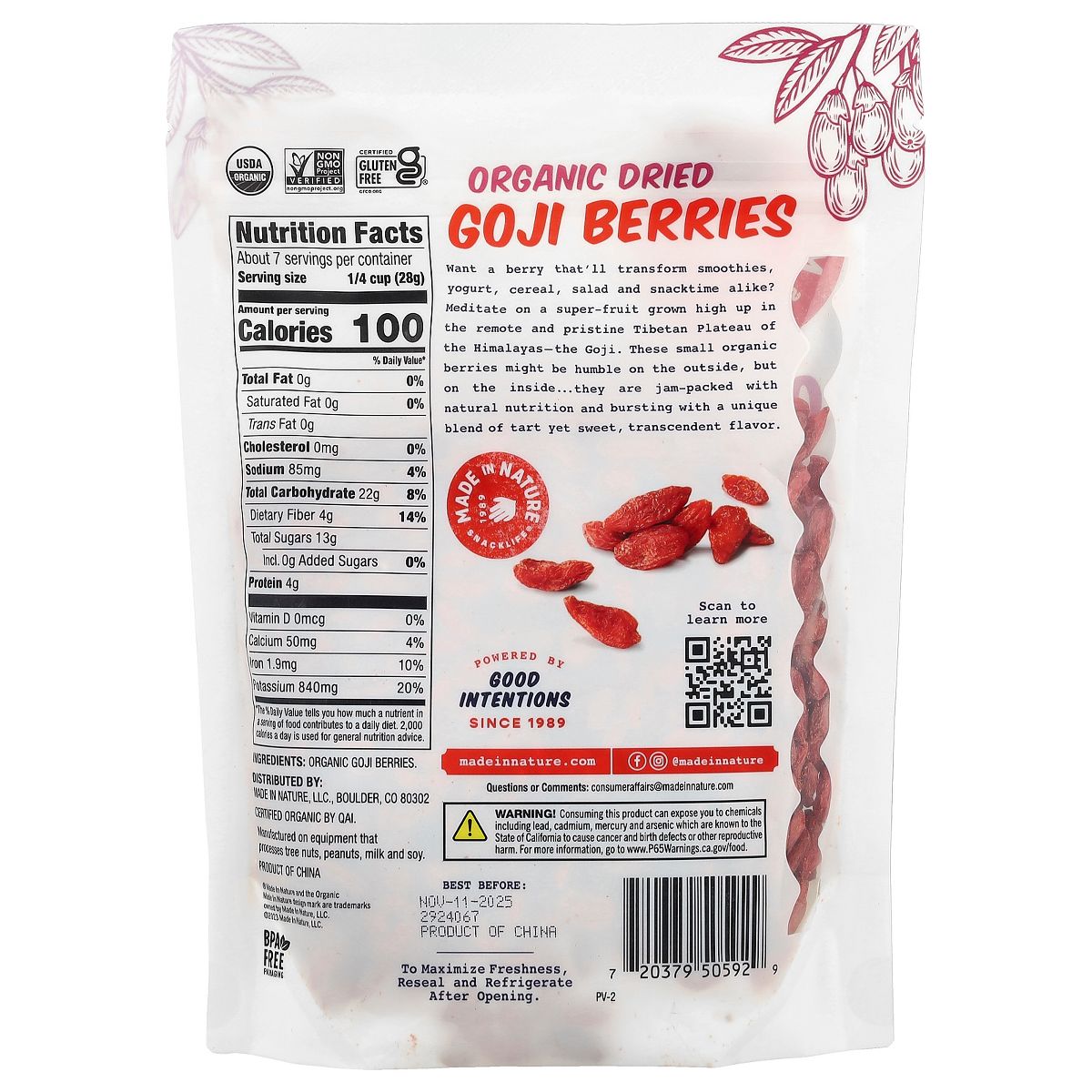Bayas de Goji Orgánicas Deshidratadas Made in Nature, Secadas al Sol, Sin Sulfitos, 7 oz (198 g)