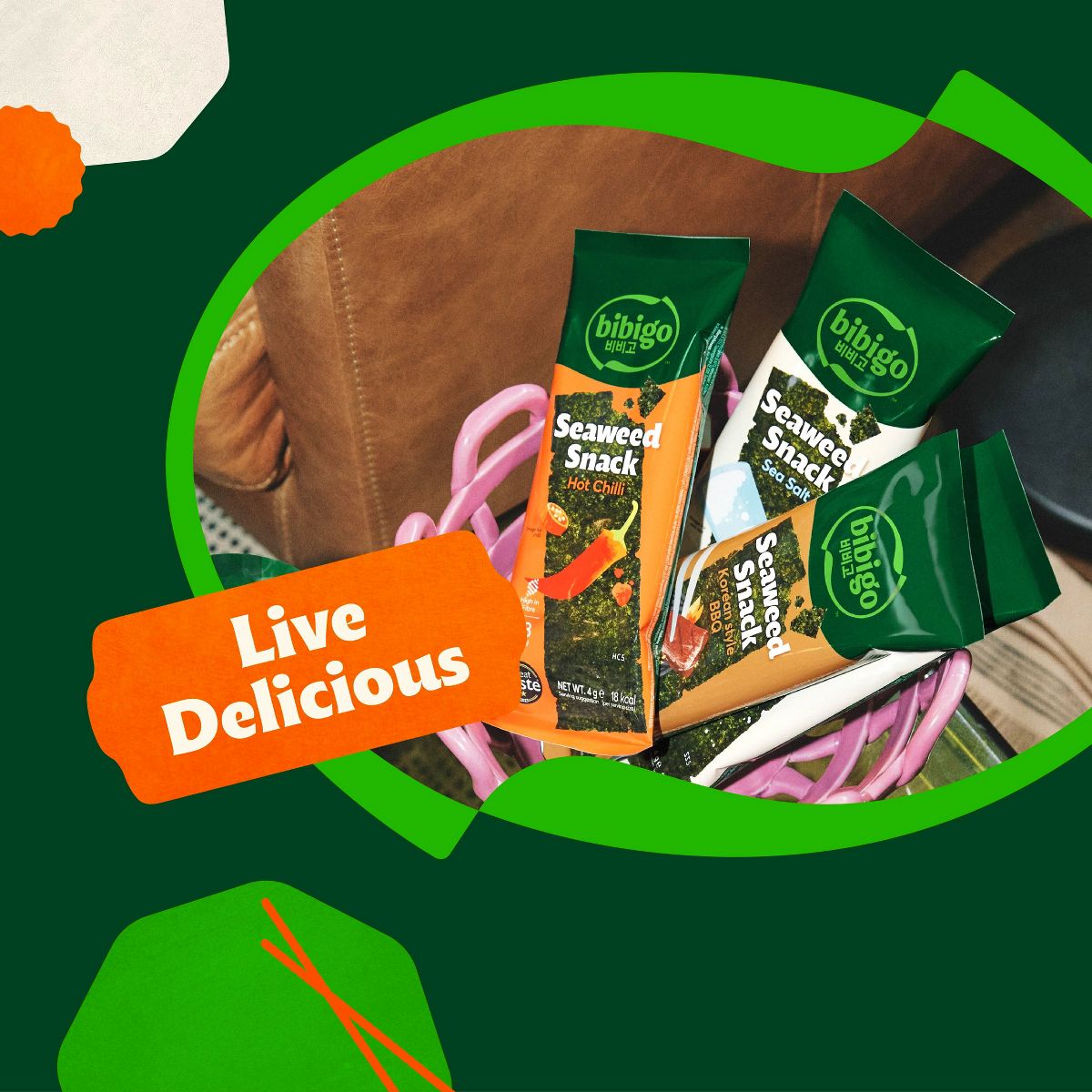 Crujientes chips de alga Bibigo con picante chile. Snack coreano delicioso y único. ¡Pruébalos ahora!