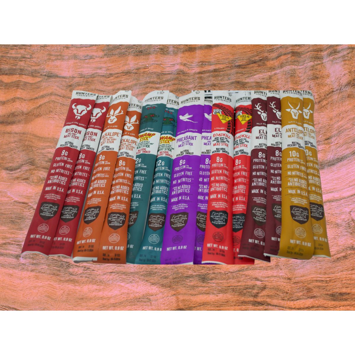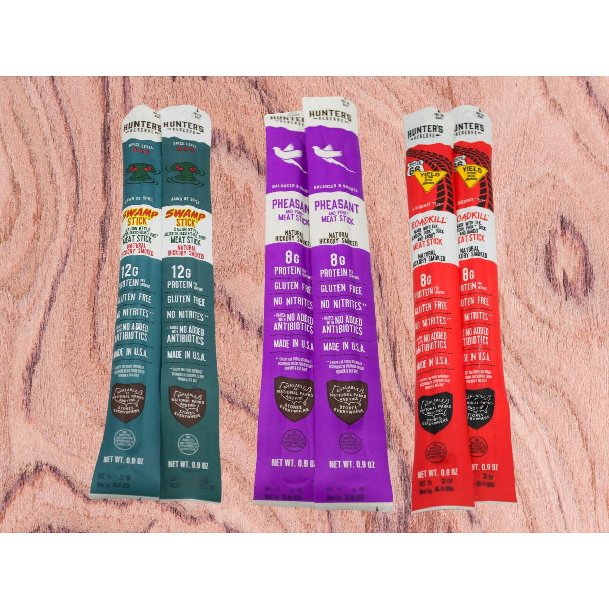 Disfruta la cecina de caza salvaje de SUGAR PLUM. 14 palitos gourmet de cerdo en una práctica bolsa de lona reutilizable. ¡El regalo perfecto!
