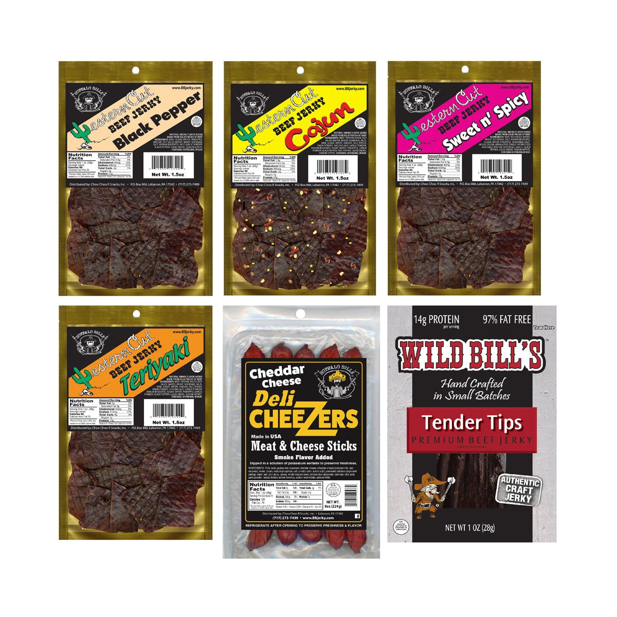 Bolsa de Regalo Muestra de 25 Piezas Buffalo Bills Multi-Marca (incluye carne seca, palitos y más)