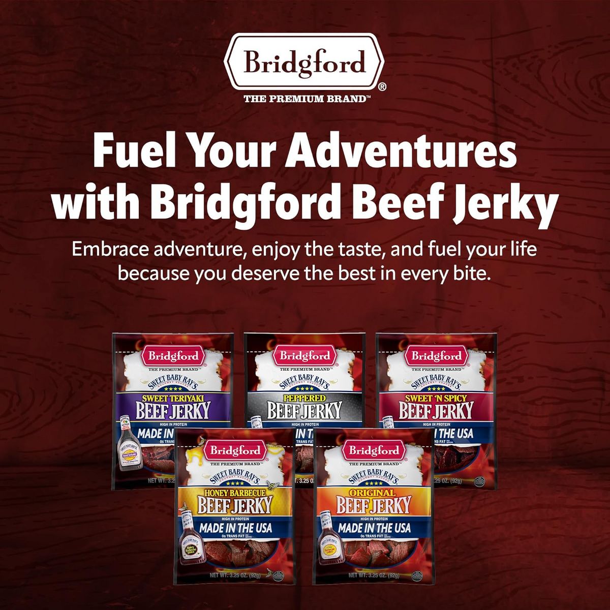 Cecina de res Bridgford sabor dulce y picante. Snack listo para comer, alto en proteína, perfecto para llevar. ¡Prueba su sabor único!