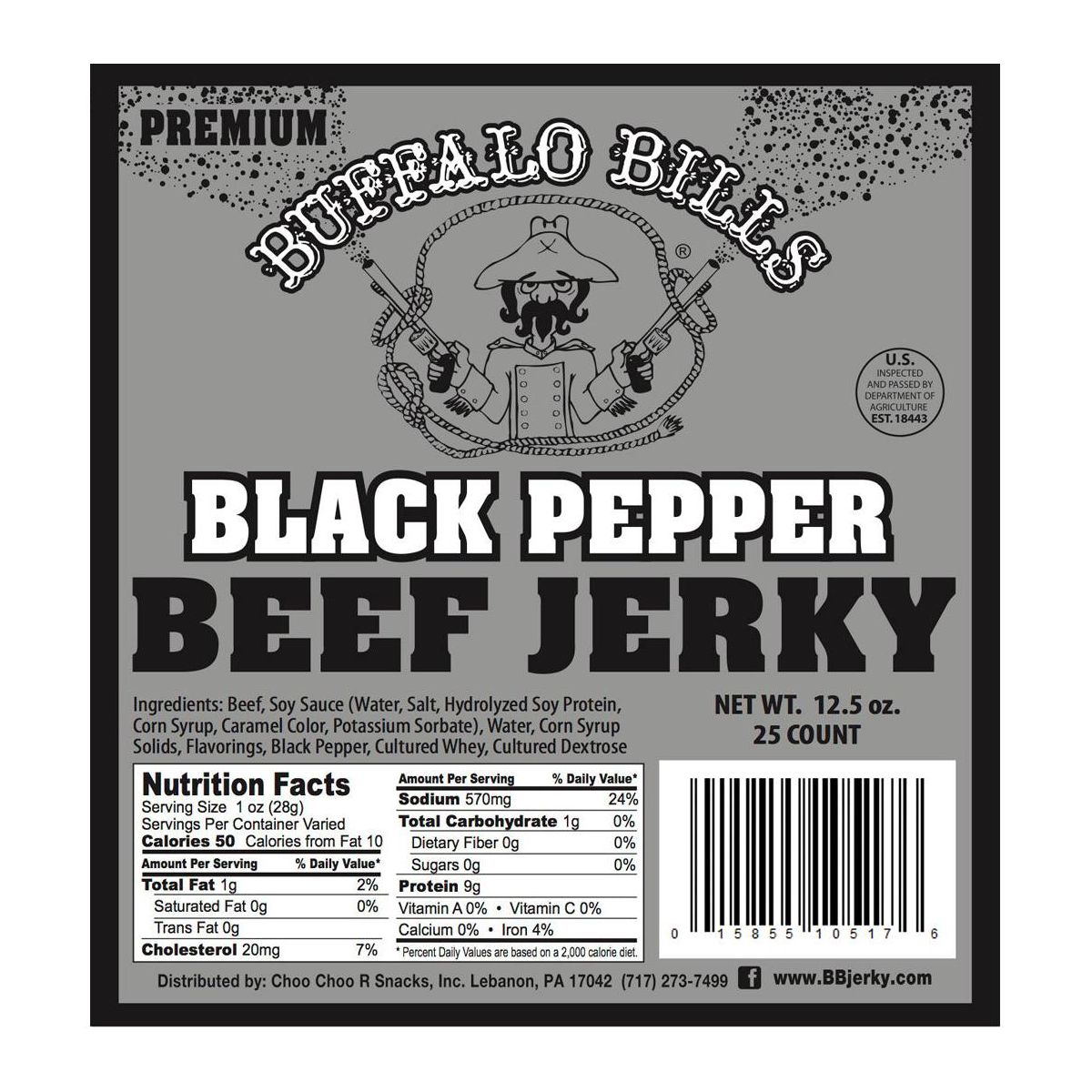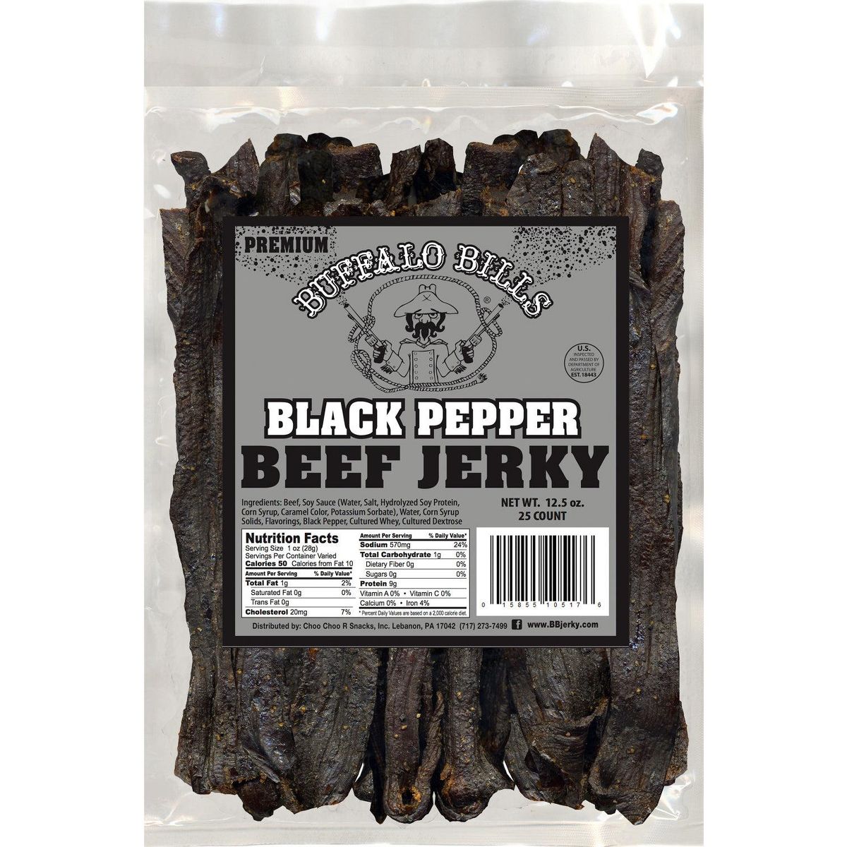 Buffalo Bills 12.5 oz Tiras Premium de Cecina de Res con Pimienta Negra (25 tiras por bolsa)