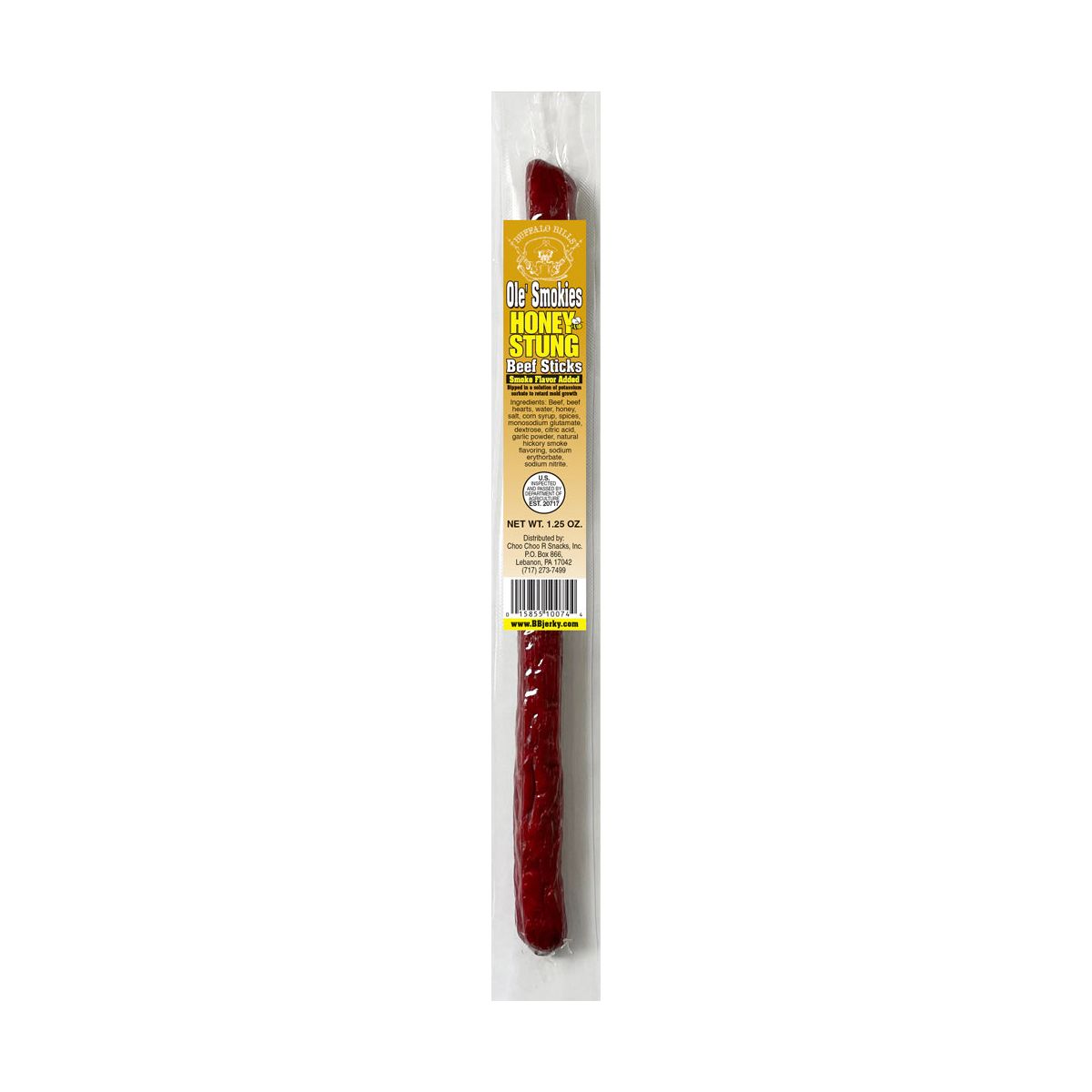 Salchichas de res Buffalo Bills, ahumadas con miel. 8g de proteína por porción. Snack premium perfecto para cualquier ocasión. ¡Pruébalas!