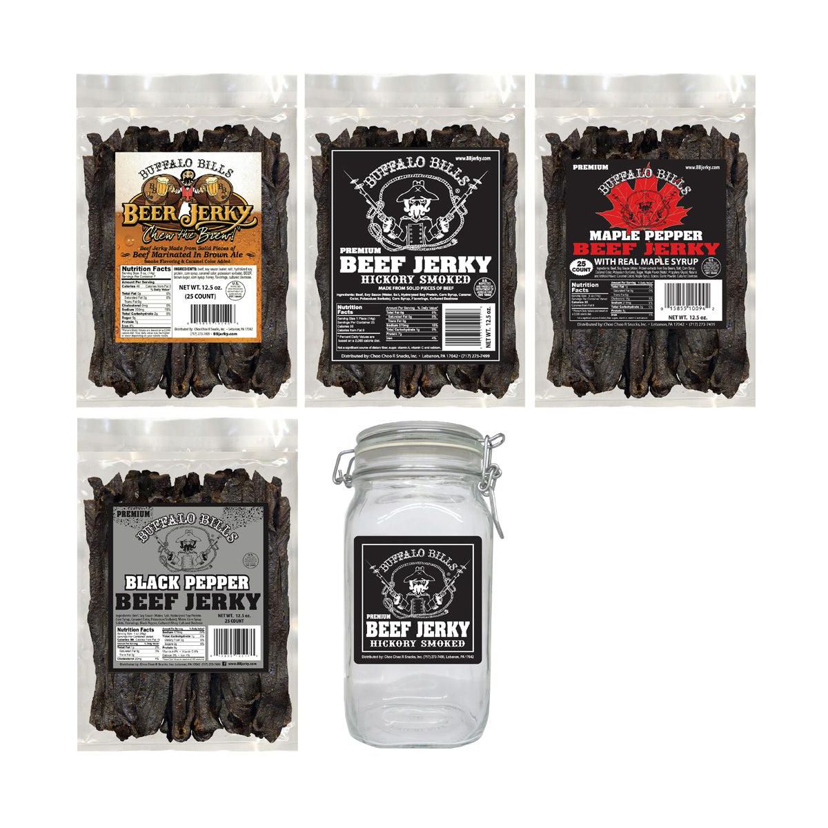 Buffalo Bills 5 Piezas Variedad de Cecina de Res y Tarro de Vidrio Bolsas de Regalo (4 bolsas y 1 tarro)