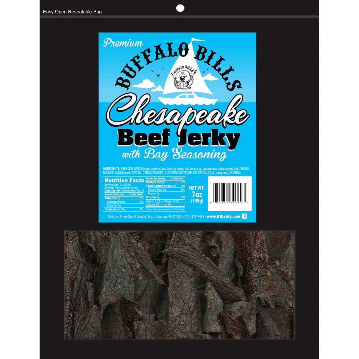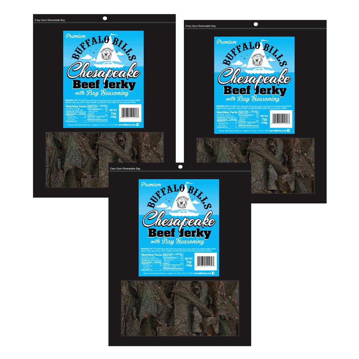 Disfruta la auténtica cecina Buffalo Bills. Tres paquetes de 7 oz con 9g de proteína por porción. Sabor Chesapeake premium. ¡Pide ya!