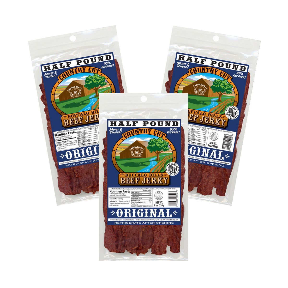 Carne Seca Country Cut Original (también conocida como Suave) Buffalo Bills – Paquete de Tres de 8 oz