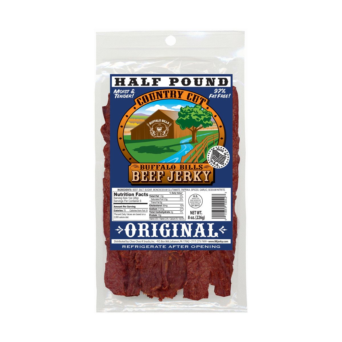 Disfruta la auténtica Carne Seca Country Cut Original de Buffalo Bills. Suave, llena de sabor y con 12g de proteína por porción. ¡El snack perfecto!