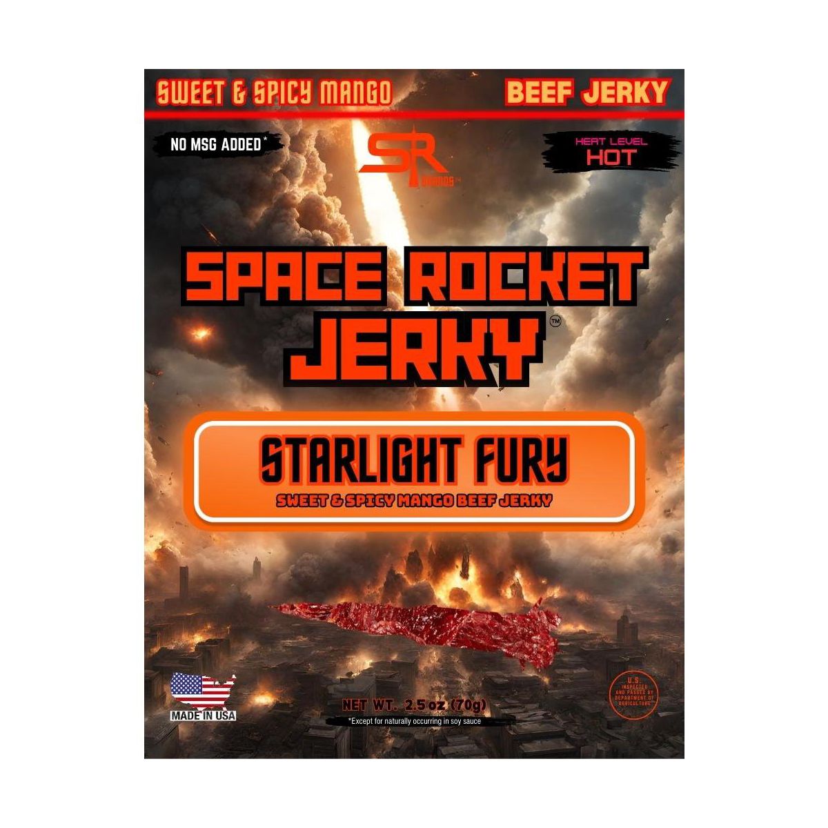 Carne Seca Space Rocket Sabor Mango Dulce y Picante 2.5 oz Paquete de 3