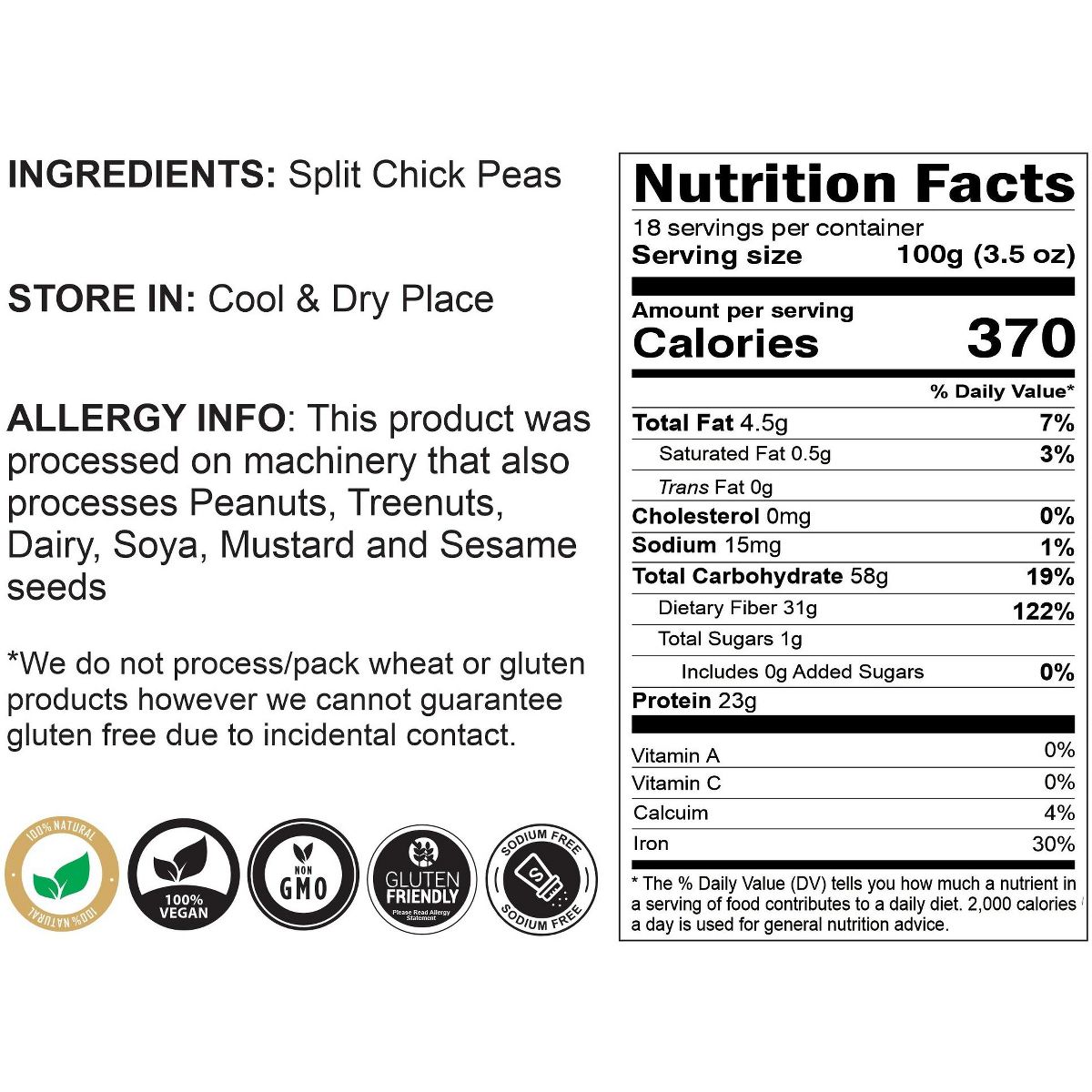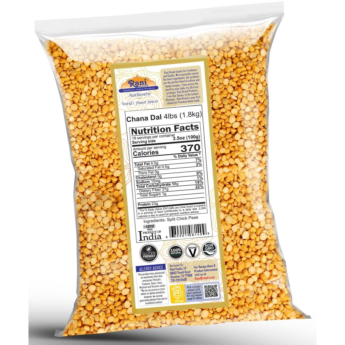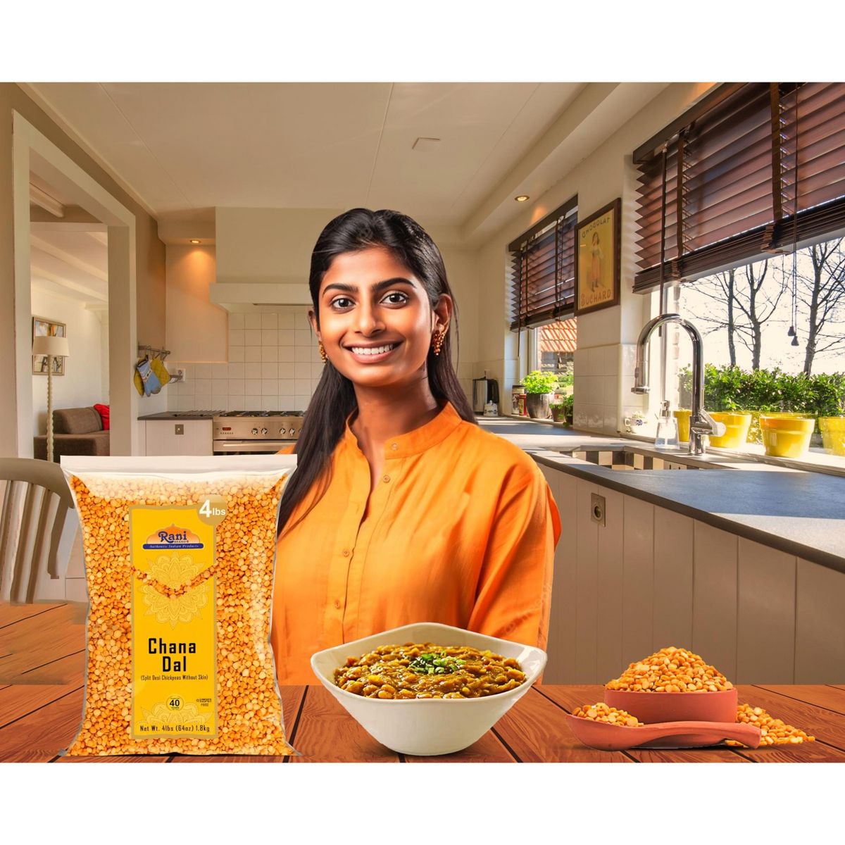 Garbanzos partidos sin piel Rani, 2 lb. Ingrediente esencial para dals y curris. Sin alérgenos mayores. ¡Sabor auténtico de la India en tu cocina!