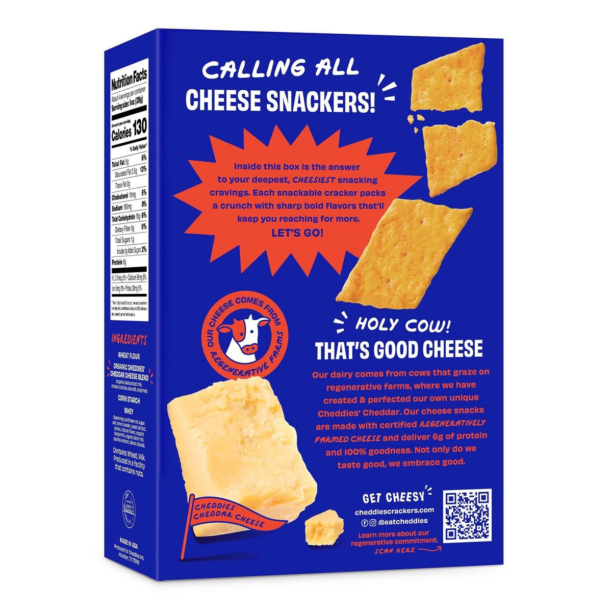 Disfruta el intenso sabor picante del queso cheddar Cheddies en prácticos trozos. Perfecto para un snack audaz y delicioso.
