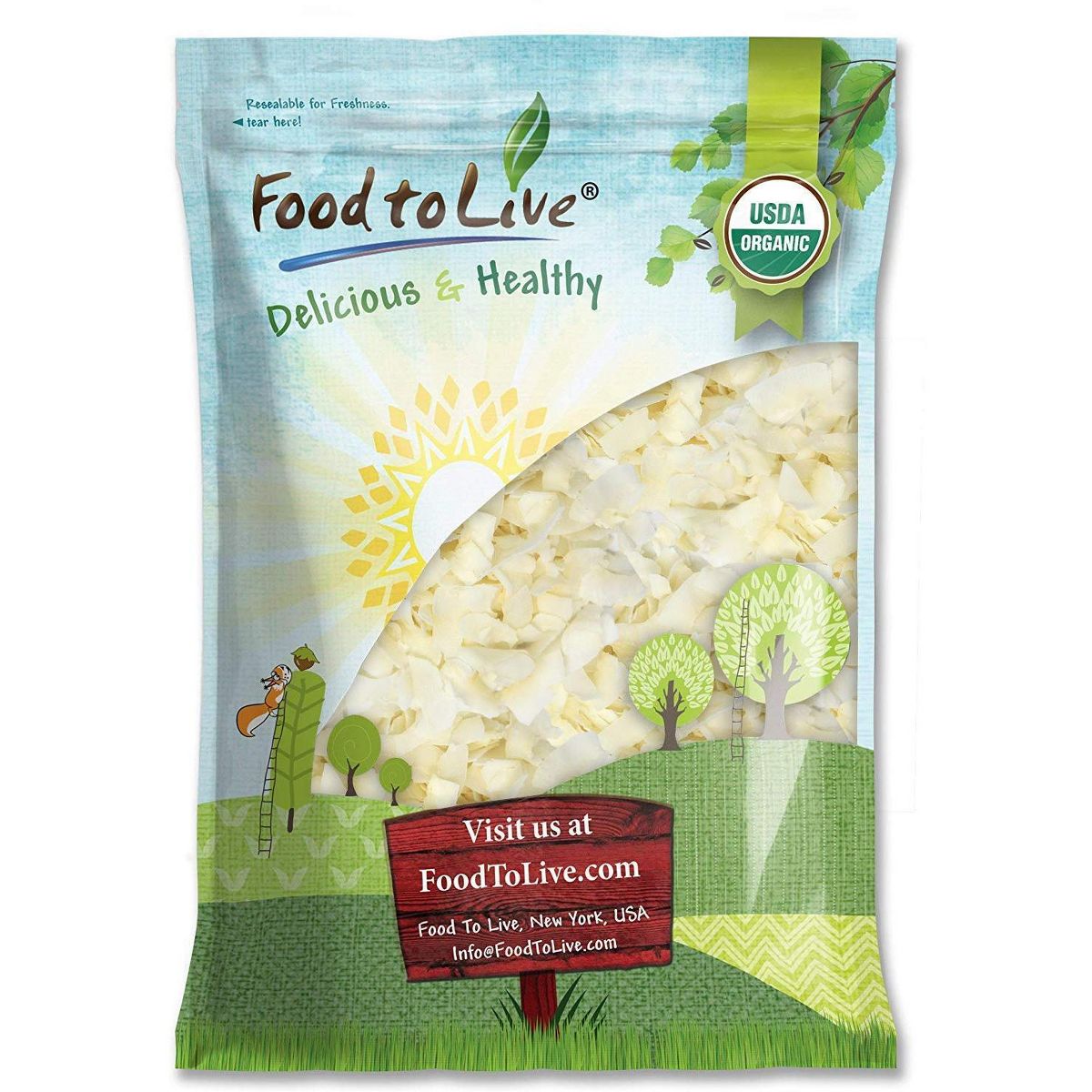 Disfruta los deliciosos chips de coco orgánicos Food To Live. Perfectos como snack saludable o para darle un toque tropical a tus recetas.