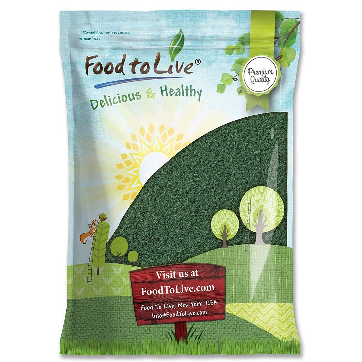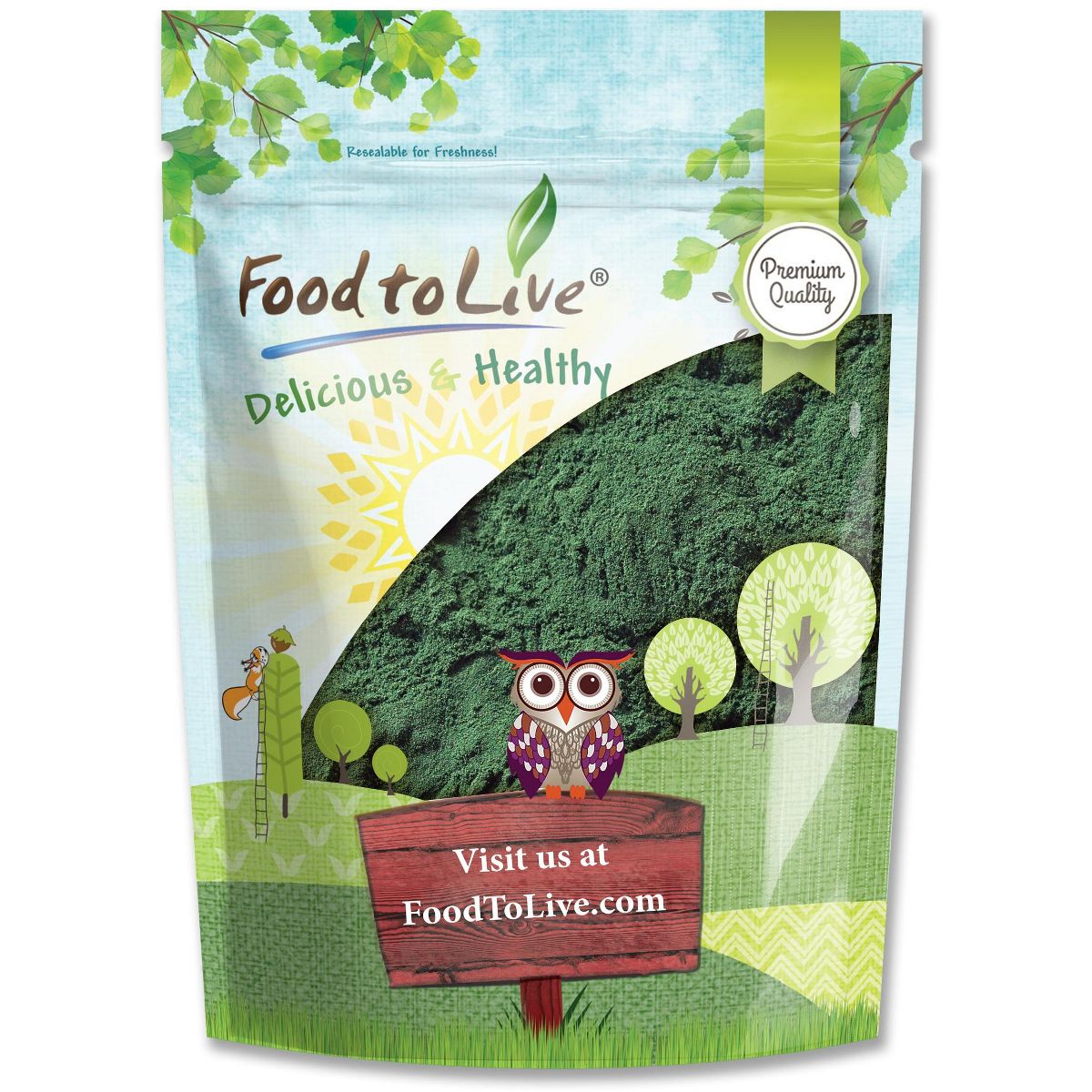 Chlorella en polvo de Food to Live. Superalimento puro, fácil de mezclar en batidos y bebidas. Potencia tu energía y bienestar naturalmente.