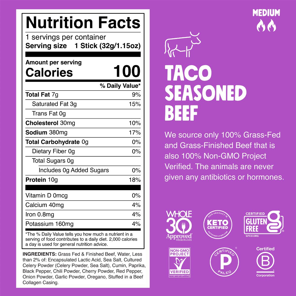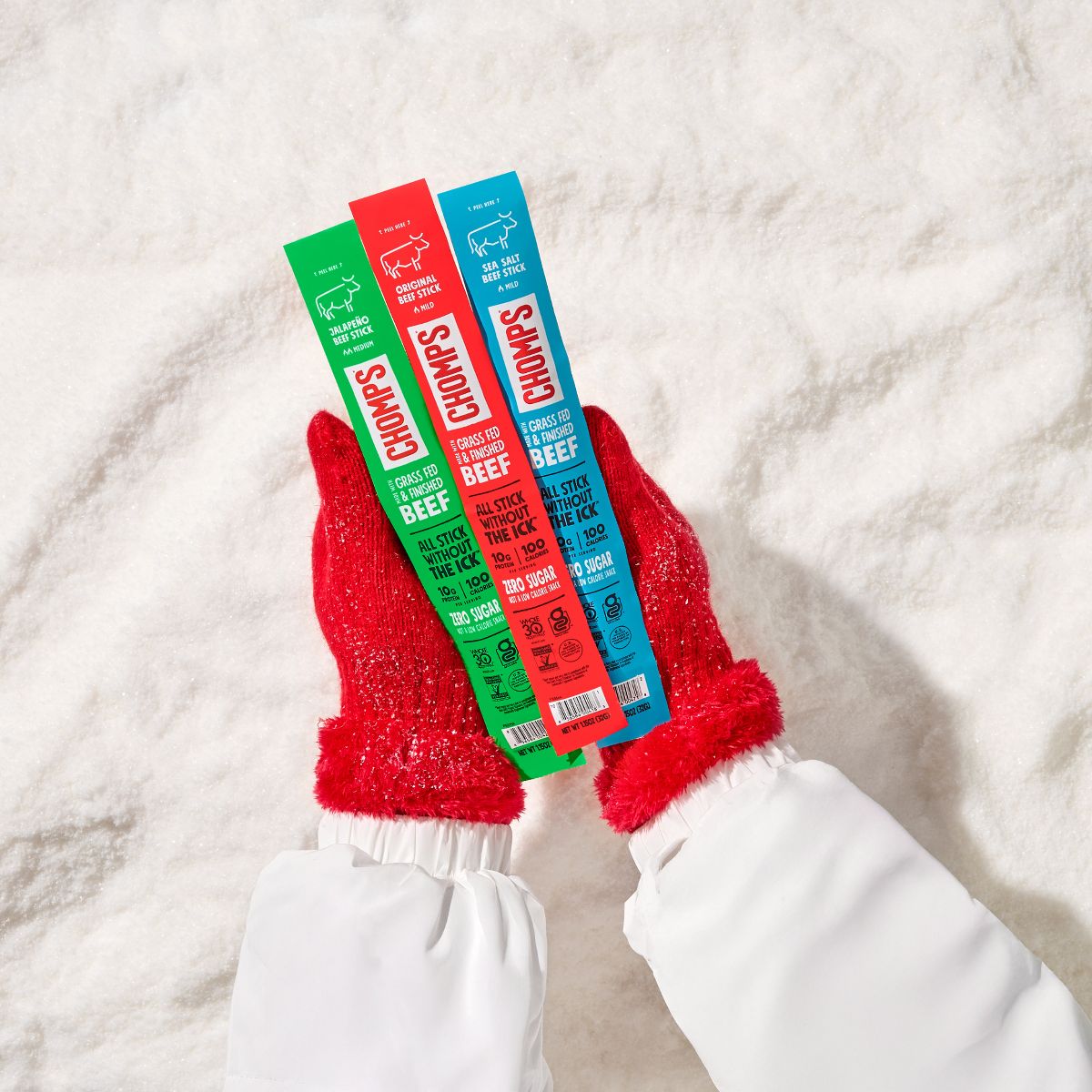 Chomps Snack Sticks: palitos de res sabor taco. Snack alto en proteína con 10g por porción. ¡Delicioso y práctico para tu día!