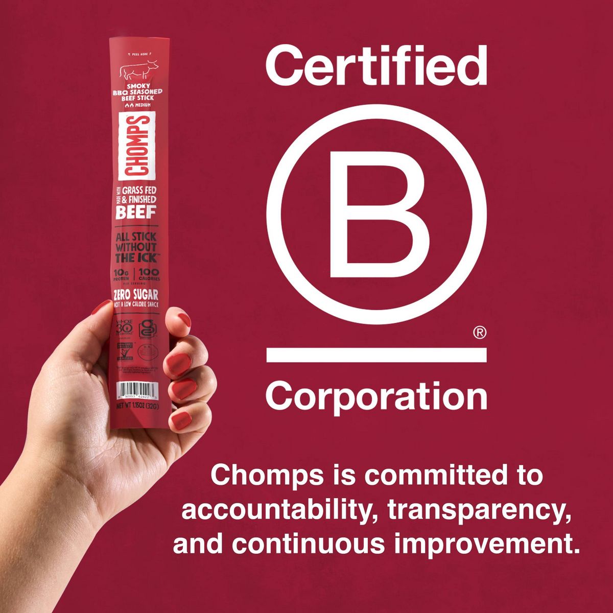 Chomps Snack Sticks: palitos de res al BBQ ahumado. 10g de proteína por porción. Snack saludable y delicioso para tu día.