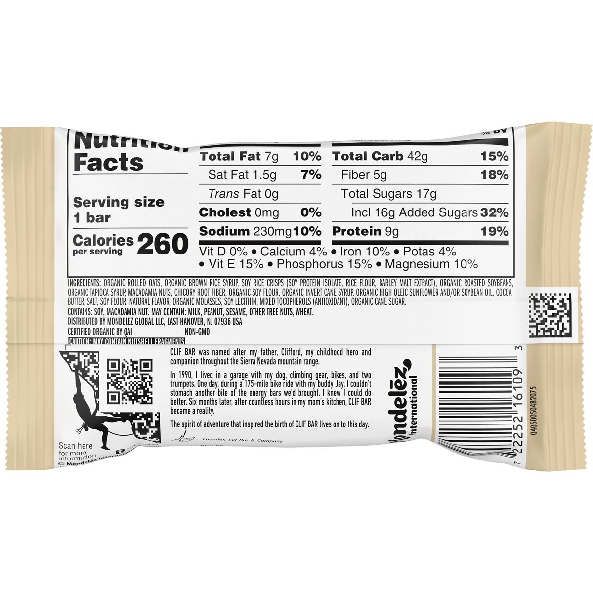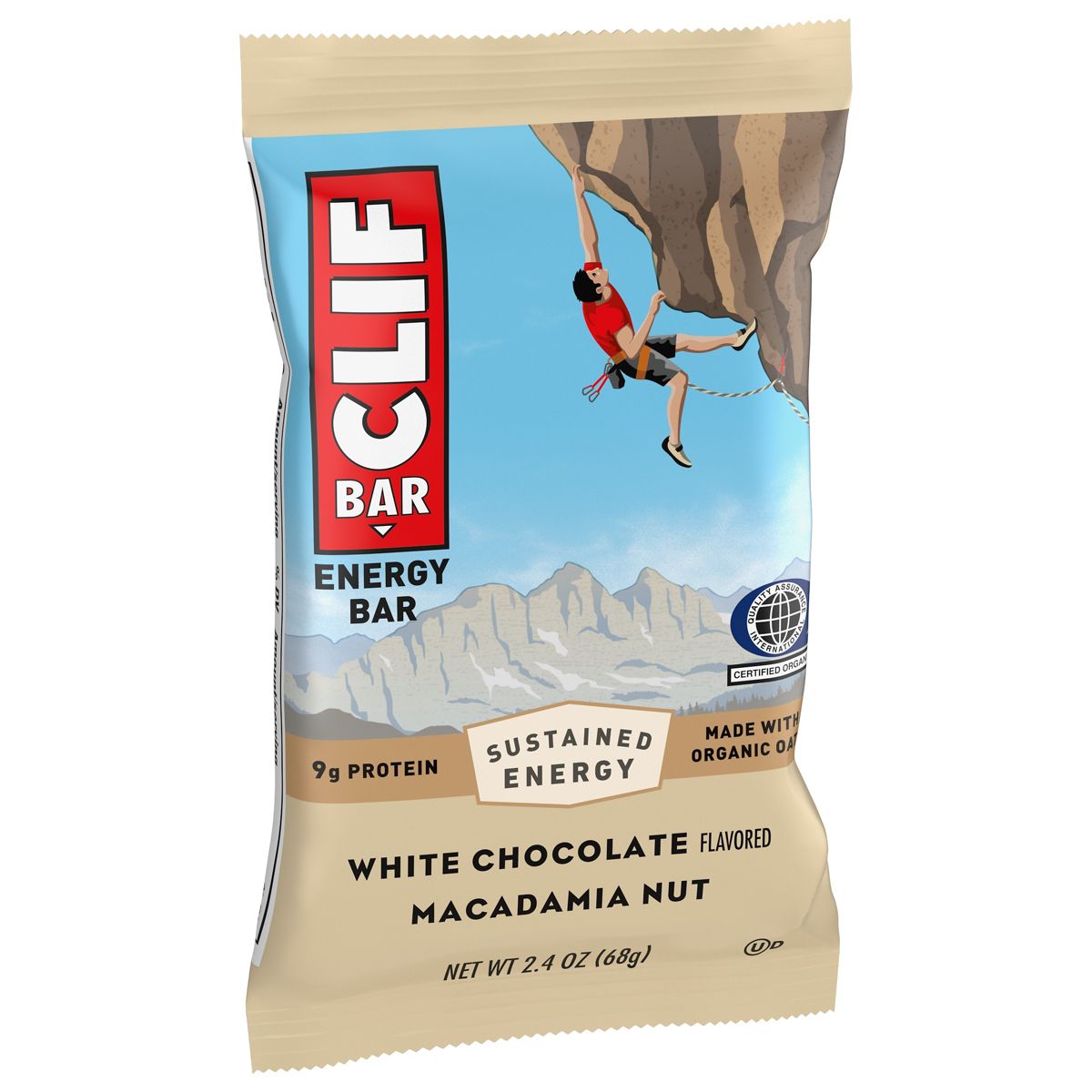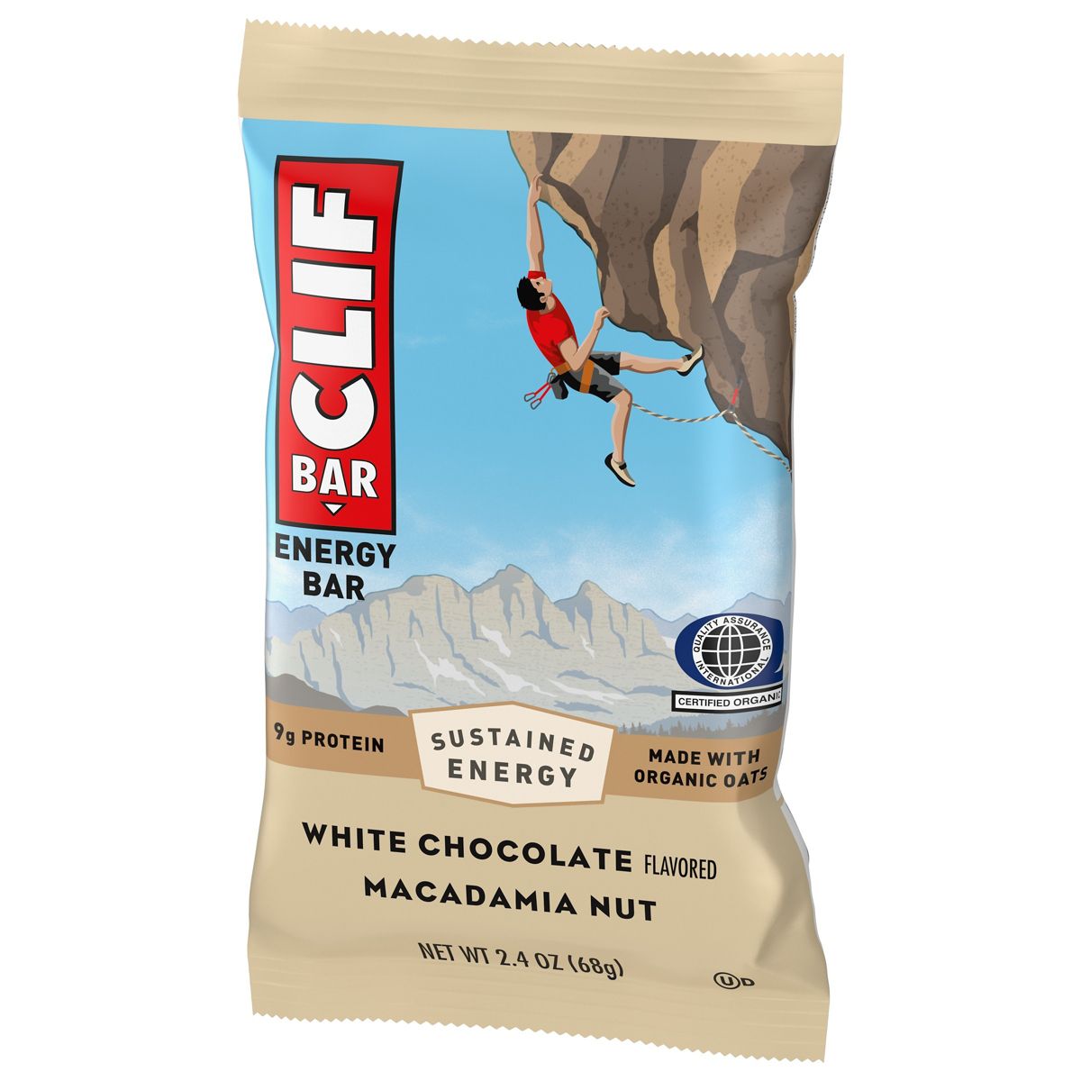 Disfruta la barra energética CLIF Bar con chocolate blanco y nuez de macadamia. Textura crujiente para tu energía diaria. ¡Pruébala!