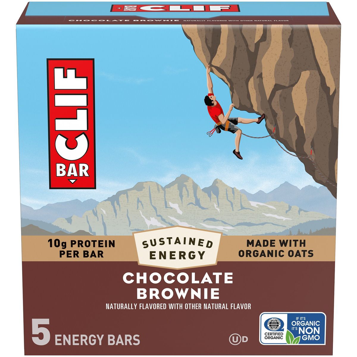 Disfruta el sabor intenso a brownie de chocolate en la barra energética CLIF Bar. Textura masticable para tu energía duradera. ¡Pruébala!
