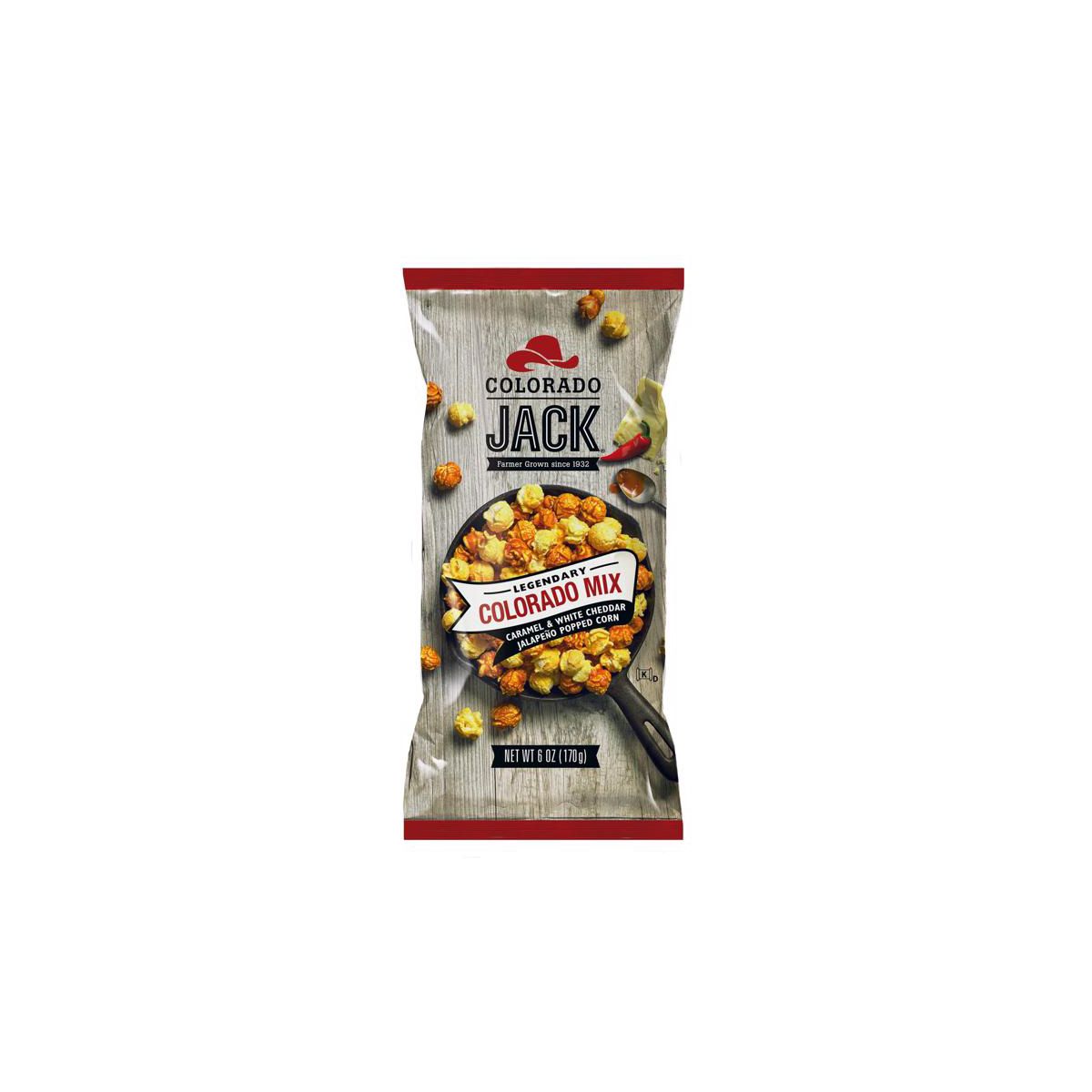 Disfruta el sabor legendario de Colorado Jack. Nuestras palomitas gourmet Colorado Mix, en prácticos paquetes individuales. ¡El snack perfecto!