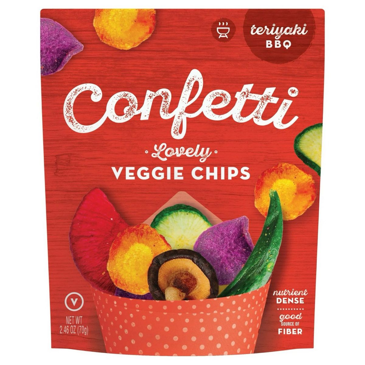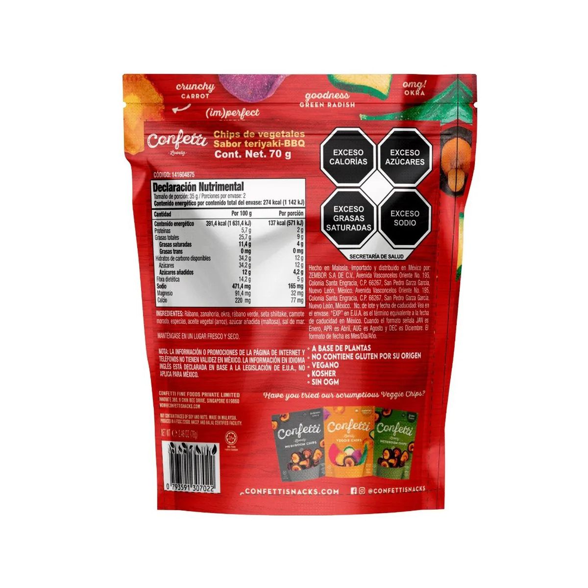 Confetti Chips sabor Teriyaki Barbecue. Disfruta el crujiente perfecto y el sabor único de estas piezas. ¡Pide tu caja con 12 bolsas ahora!