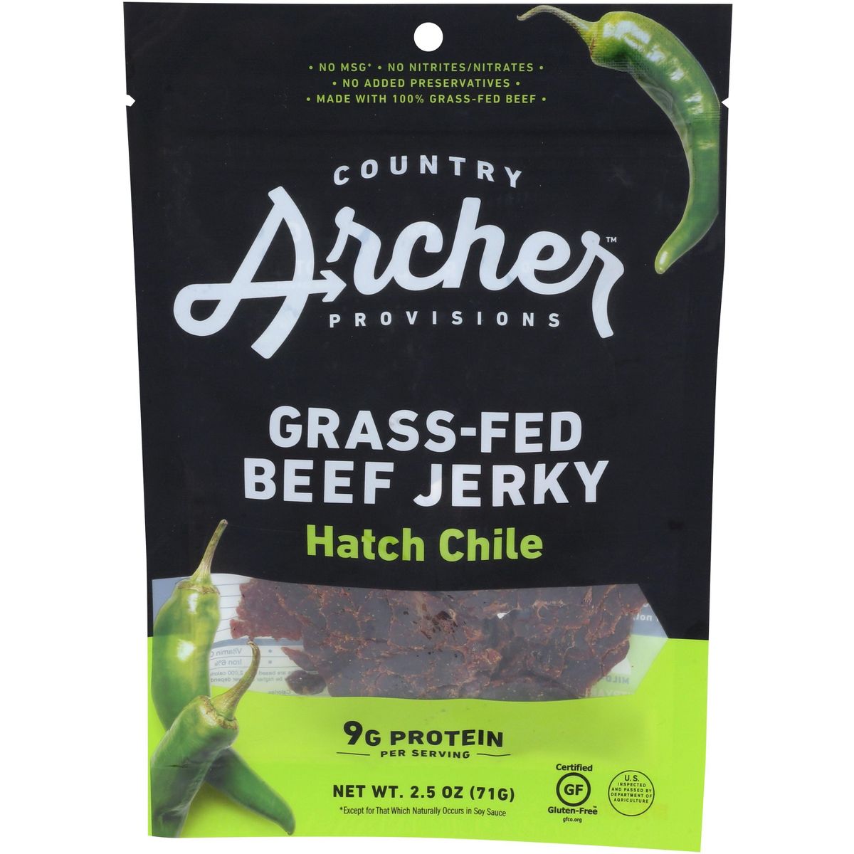 Country Archer Jerky Beef Hatch Chile – Paquete de 12 – 2.5 oz
