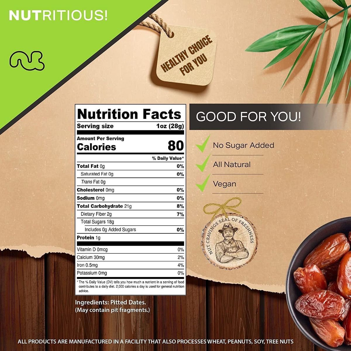 Dátiles Deglet Noor Secos Nut Cravings: Sin Hueso, Sin Endulzar y 100% Naturales