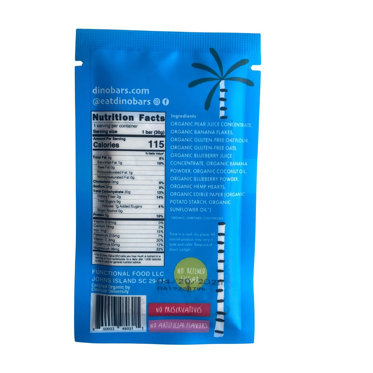 Dino Bars | Arándano | Barras de Fruta Orgánicas para Niños, Sin Desorden