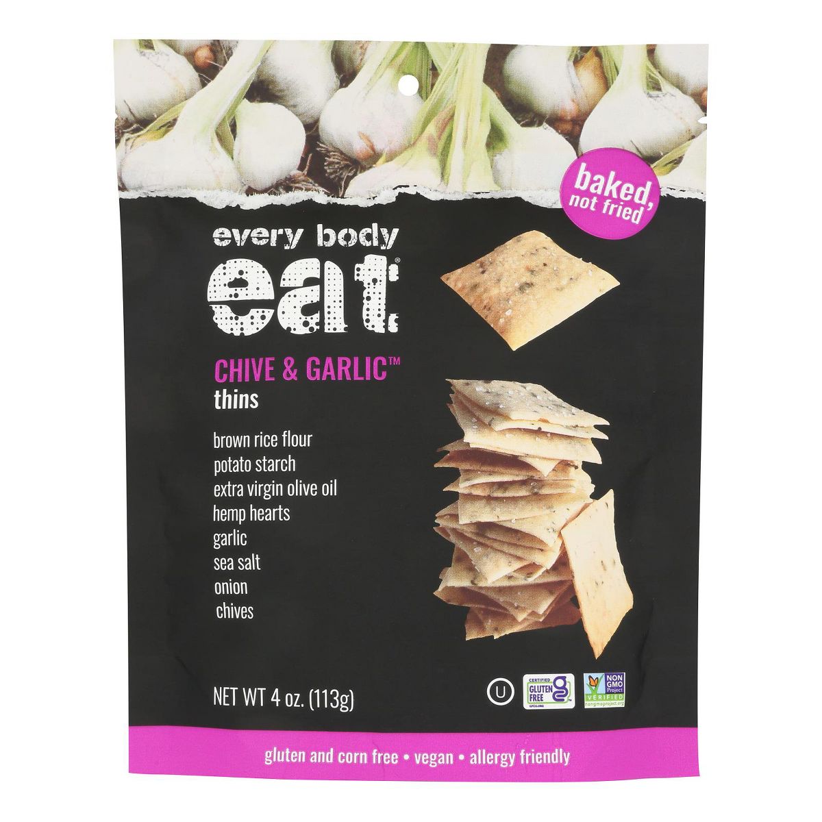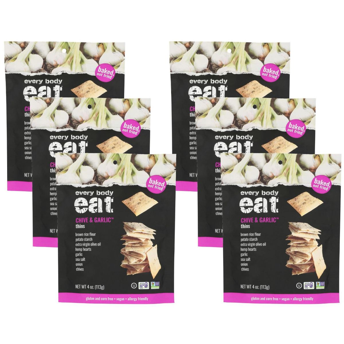 Every Body Eat Snack Thins de Cebollín y Ajo – Caja con 6/4 oz