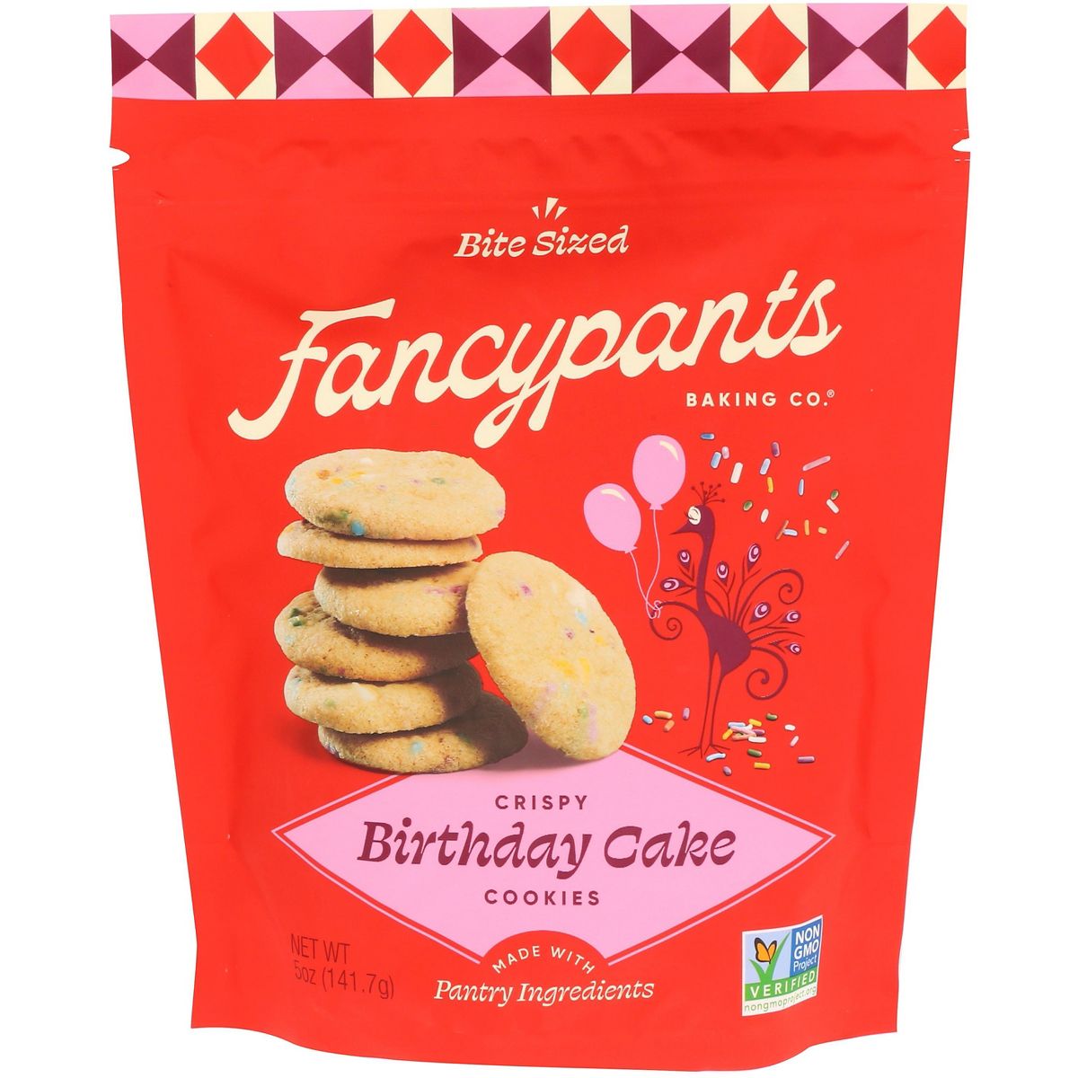 Disfruta el sabor a pastel de cumpleaños con las galletas mini crujientes Fancypants. Listas para comer, ideales para un dulce antojo.