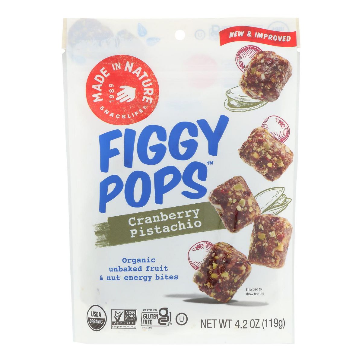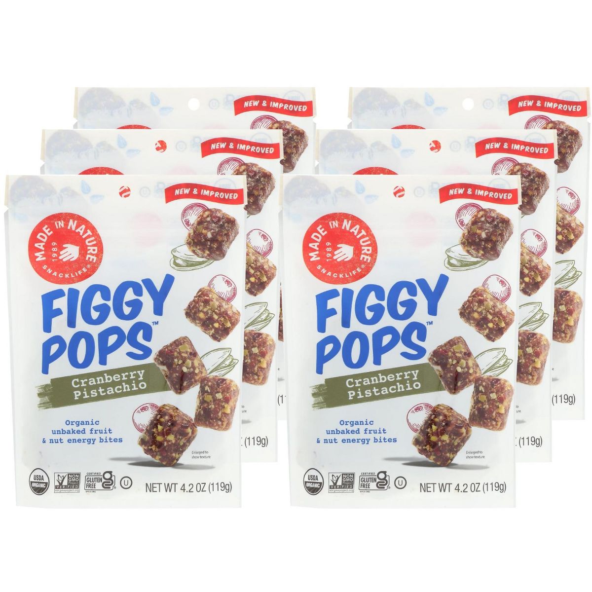 Figgy Pops de Made In Nature Bolitas Energéticas de Arándano y Pistache – Caja con 6/4.2 oz
