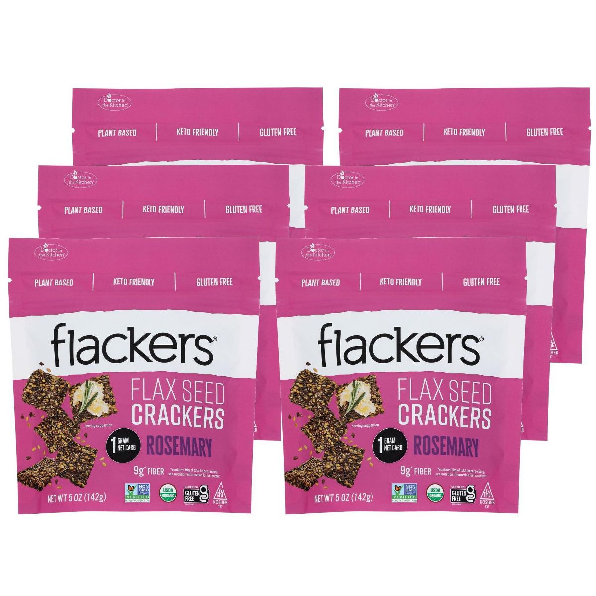 Flackers Galletas de Semilla de Lino con Romero. Snack orgánico certificado, sin gluten y no transgénico. Disfruta su crujiente sabor en esta caja de 6 unidad…