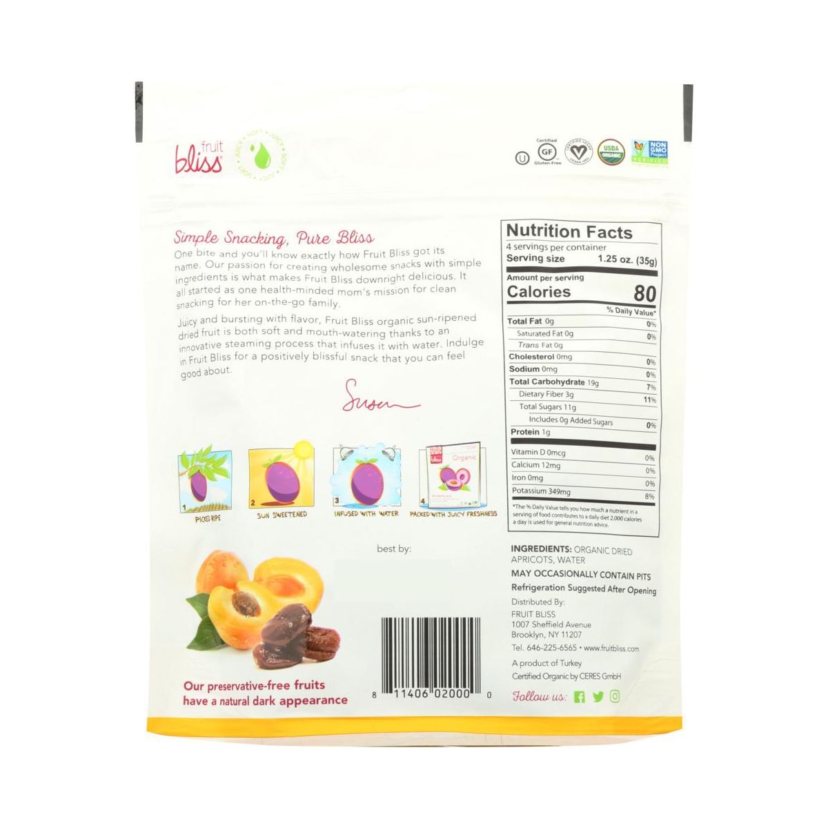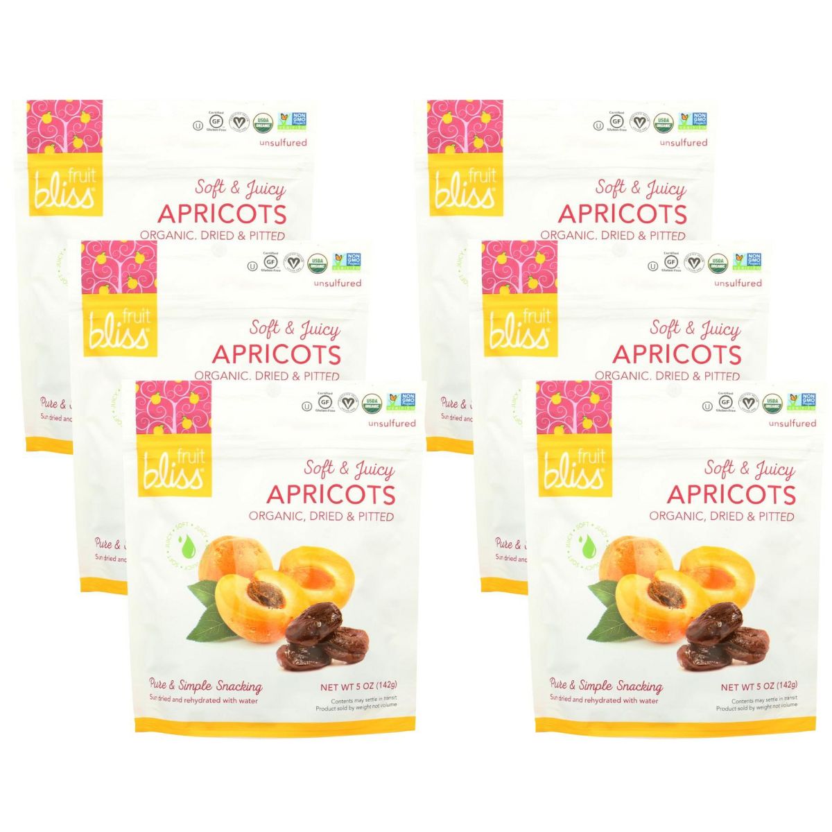Fruit Bliss Albaricoques Secos Orgánicos para Snack – Caja con 6/5 oz